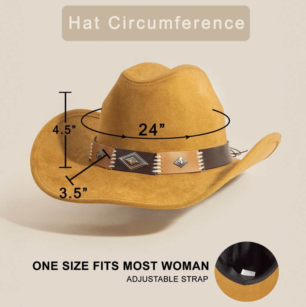 A must-have addition to any cowboy hat collection, this cowboy hat highlights a special unique western concho strap design. This cowboy hat is an effortless way to add some personality to your outfit. Available in BR, IV, BK and CO. This item is sold in packs of 1.