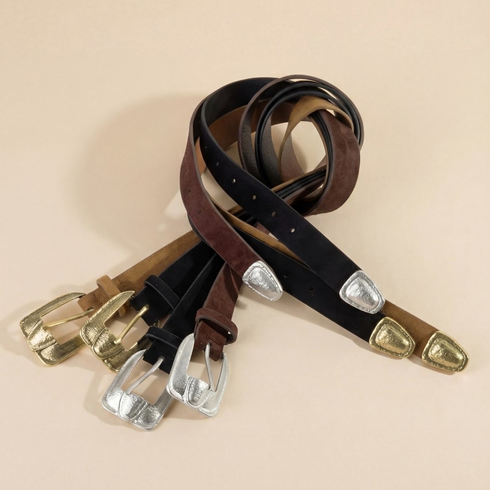 Guaranteed to add a touch of glamour to any outfit, this leather belt encompasses a grand antique square buckle vegan design. Elevate your style effortlessly with this versatile leather belt, enhancing the appeal of any ensemble. Available in GBK, GBR, SBK, SCO. This item is sold in packs of 1.