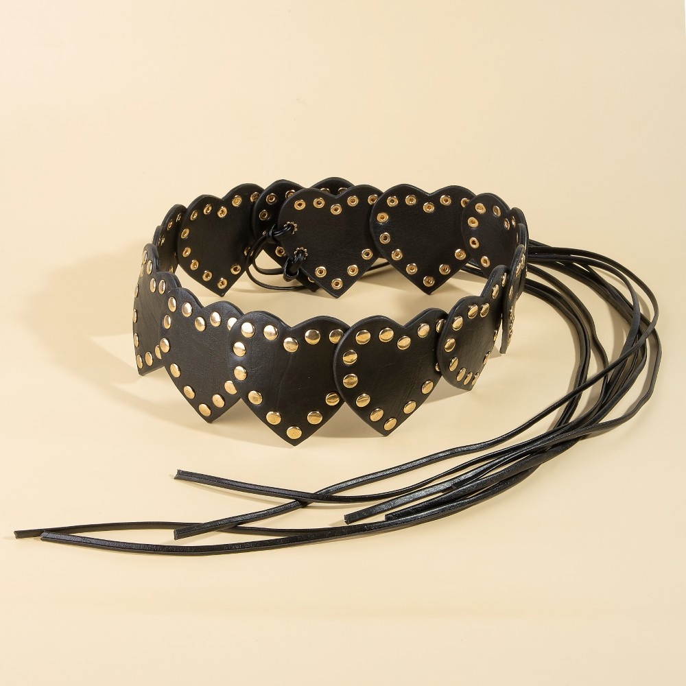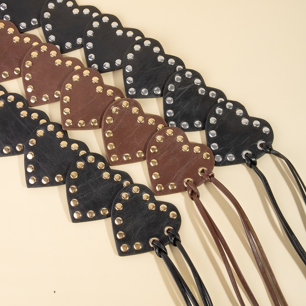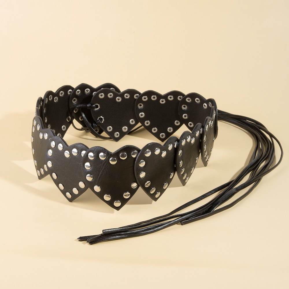 • A bold and daring choice that is sure to impress, this belt contains a special leather heart studded trim design. Perfect for adding a pop of color or texture to any outfit, this belt is a must-have. Available in GBK, GCO, SBK. This item is sold in packs of 1.