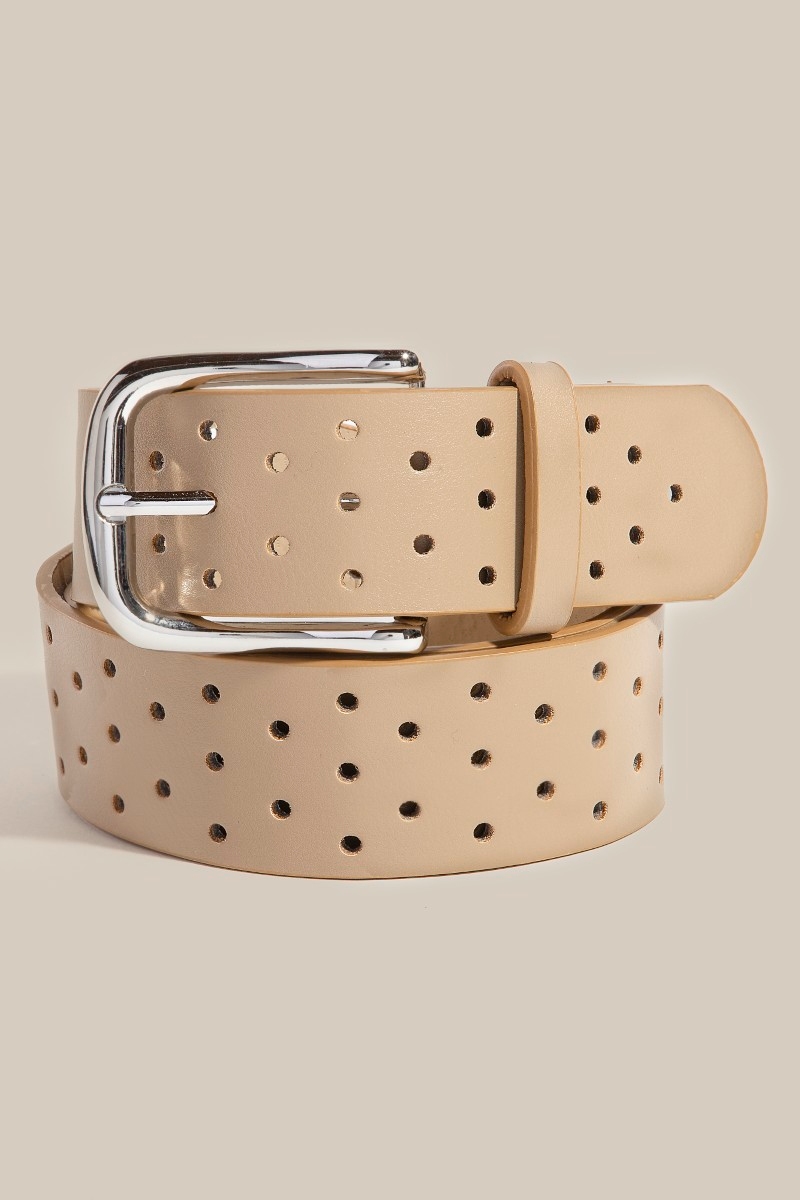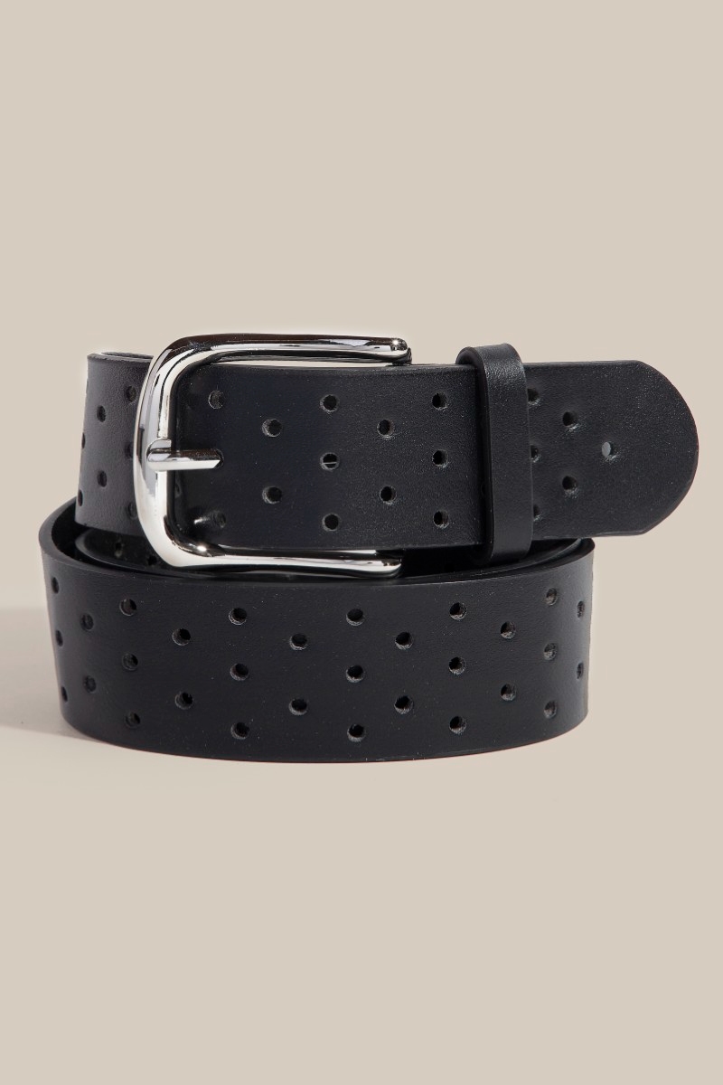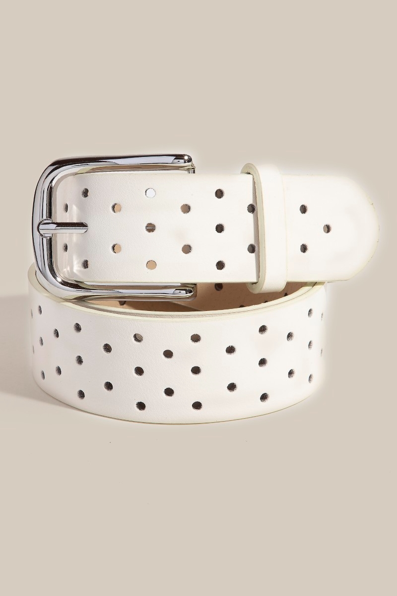 • The perfect way to add some sparkle to your outfit, this faux leather belt reveals an intricate hole punched design. A stylish faux leather belt that's perfect for complementing your favorite outfit. Available in BK, BR, IV, KA. This item is sold in packs of 1.