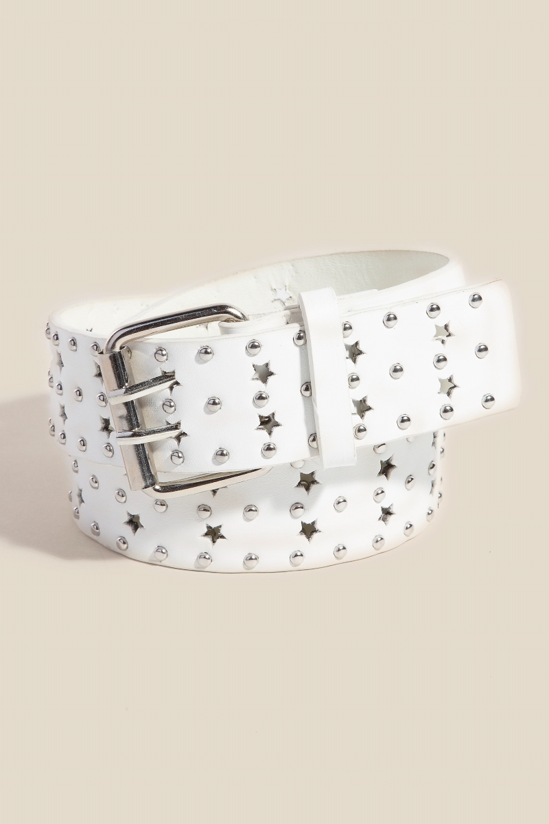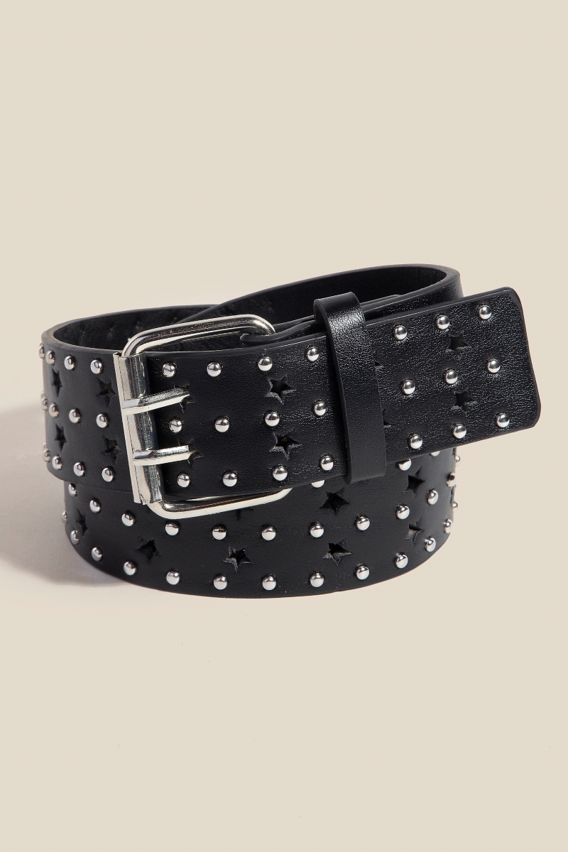 - A bold and daring choice, perfect for those who want to stand out from the crowd, this faux leather belt displays a unique star punched studded design. This item adds the perfect finishing touch to any outfit, making it stand out from the crowd. Available in SBK, SDBR, SWH. This item is sold in packs of 1.