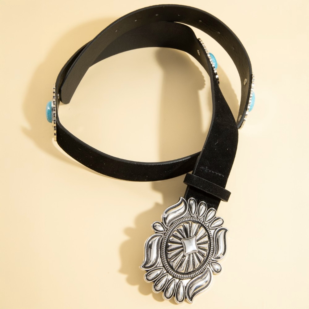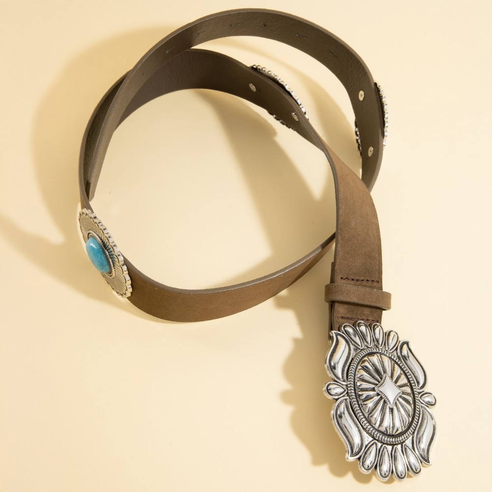 • This faux leather belt is featured in our Concho, Western and Western Collection.