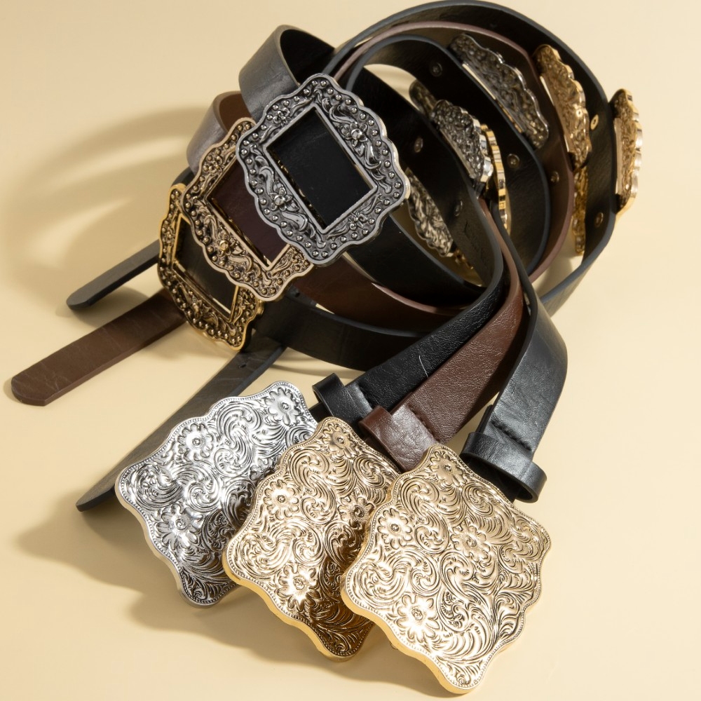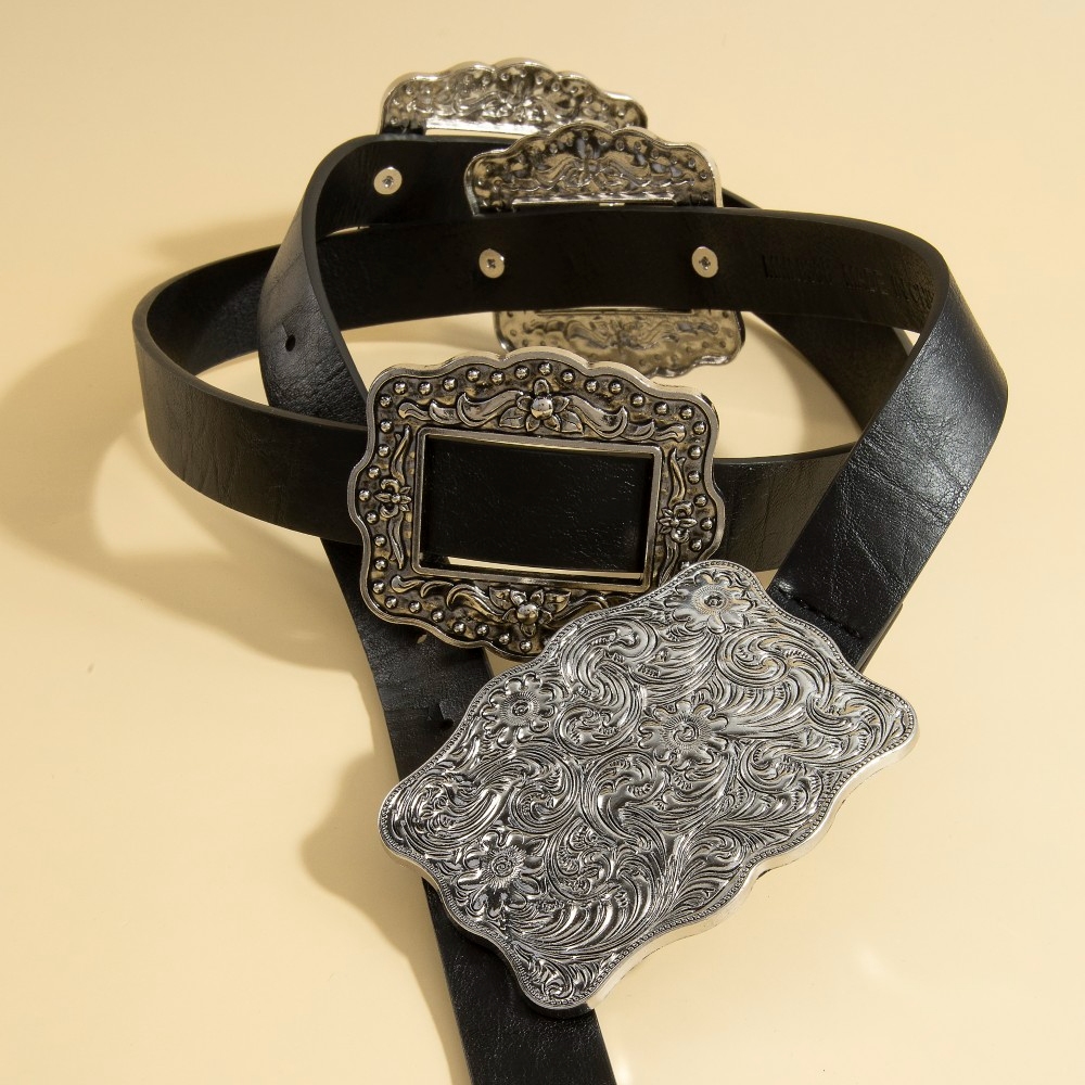 The epitome of sophistication and style, this belt highlights a special western floral embroidered concho buckle design. This item is a great way to add some texture and dimension to any outfit. Available in GBK, GCO, SBK, GBK, GCO and SBK. This item is sold in packs of 1.