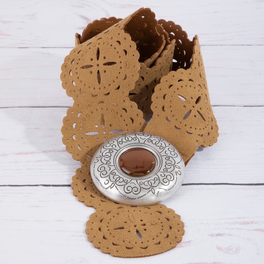 Western Braided Concho Buckle Vegan Leather Belt