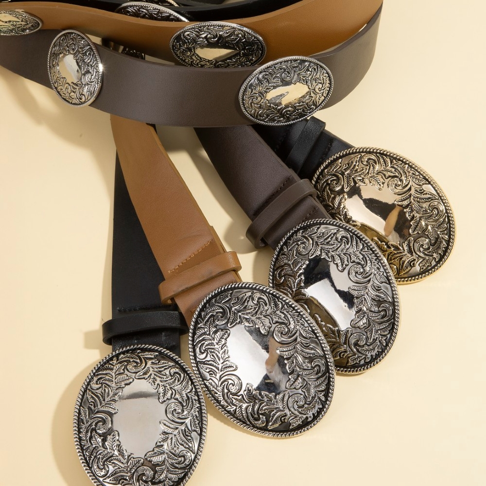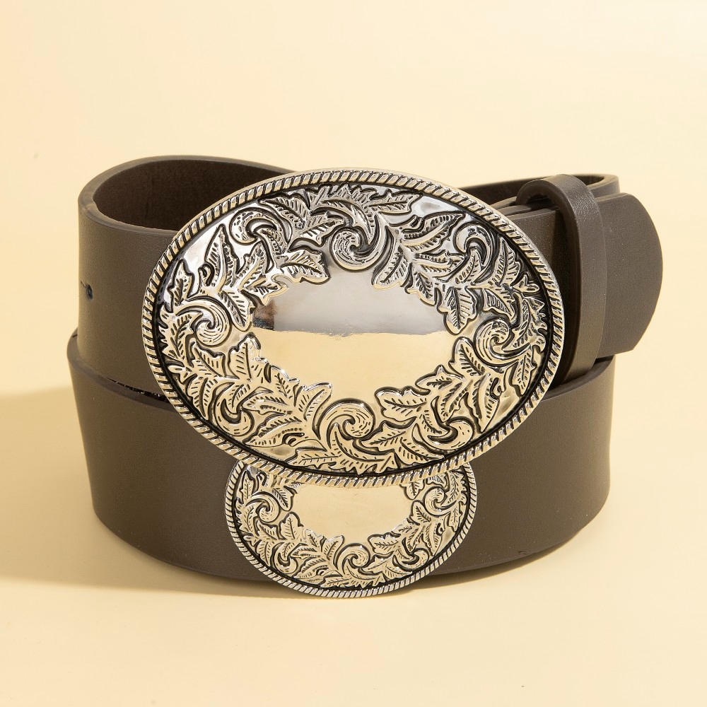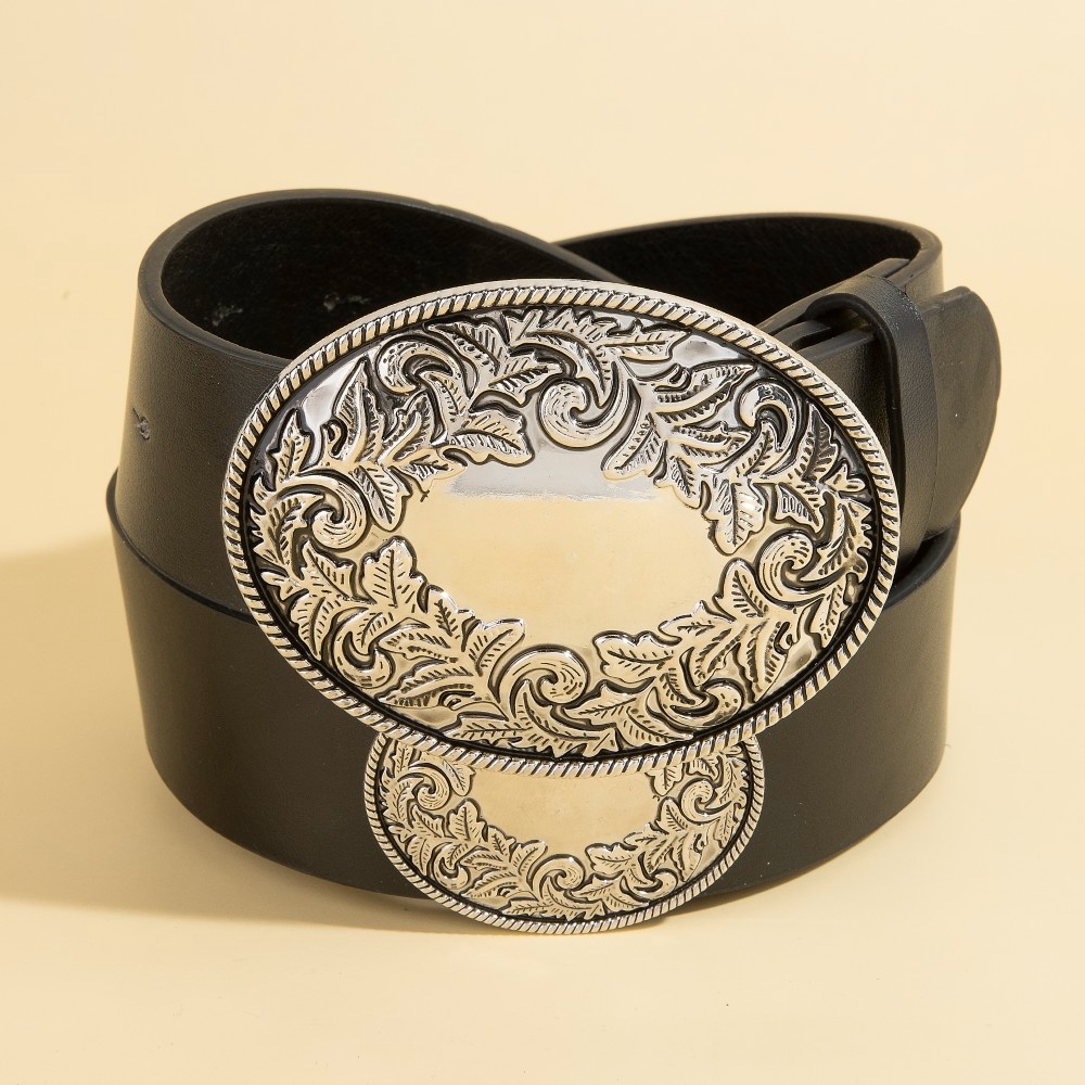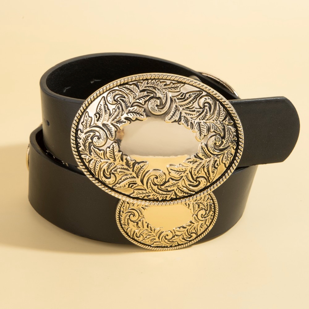 • Elevate your style with something unique and daring, this belt brings a one-of-a-kind western large engraved oval buckle design. This item is perfect for adding some color and vibrancy to any outfit. Available in GBK, SBK, SDBR, SLBR. This item is sold in packs of 1.
