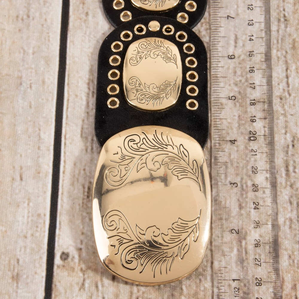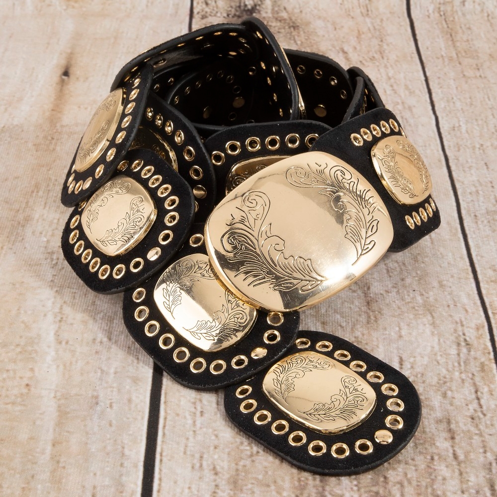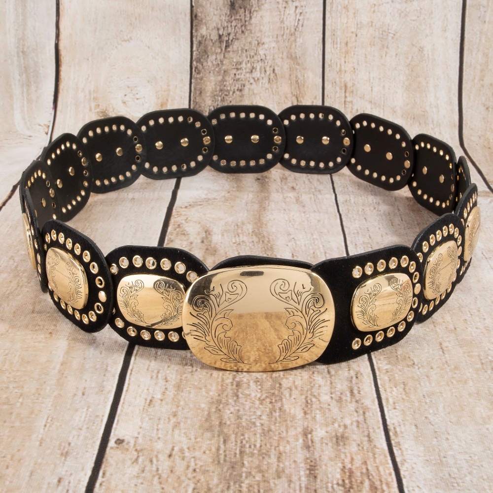 • Add some edge to your look, this leather belt possesses a fine western rectangle concho vegan design. This item is perfect for anyone who loves to accessorize and add some personality to their outfits. Available in GBK, SBK, SBR. This item is sold in packs of 1.