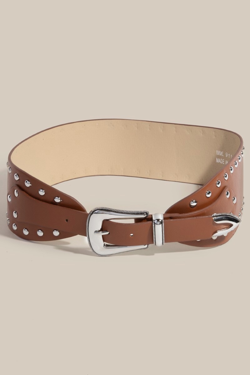 • A true work of art, this leather belt features an exceptional wide grommet studded vegan design. Make a lasting impression with this versatile leather belt, a subtle yet impactful addition to your fashion repertoire. Available in IV, BK and BR. This item is sold in packs of 1.