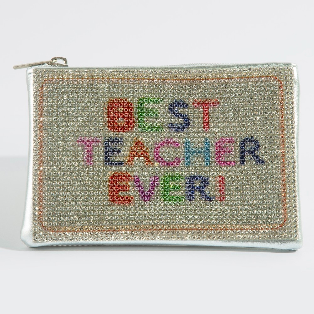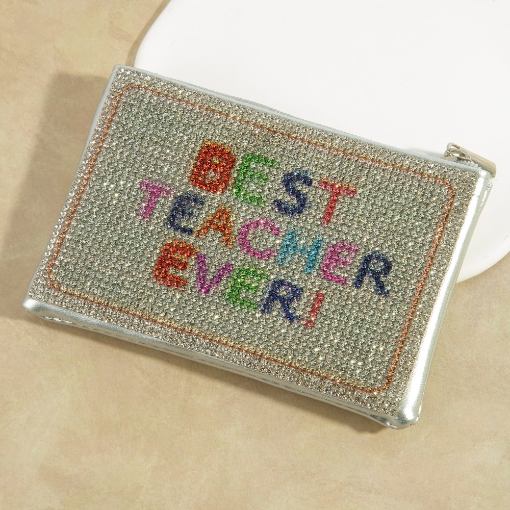 An instant wardrobe staple, this coin purse incorporates a remarkable best teacher ever pave design. Perfect for adding some personality and flair to your wardrobe, this coin purse is a must-have. This item is sold in packs of 1.