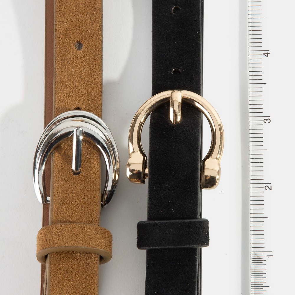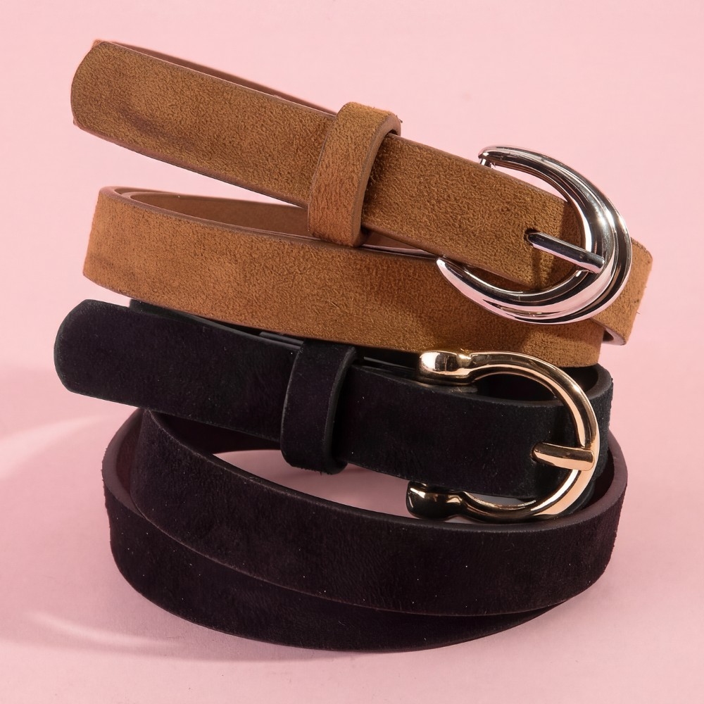 The perfect way to showcase your unique style, this belt set includes a stunning black and brown vegan leather design. Infuse elegance into your daily wardrobe with the versatile charm of this must-have belt set. This item is sold in packs of 1.