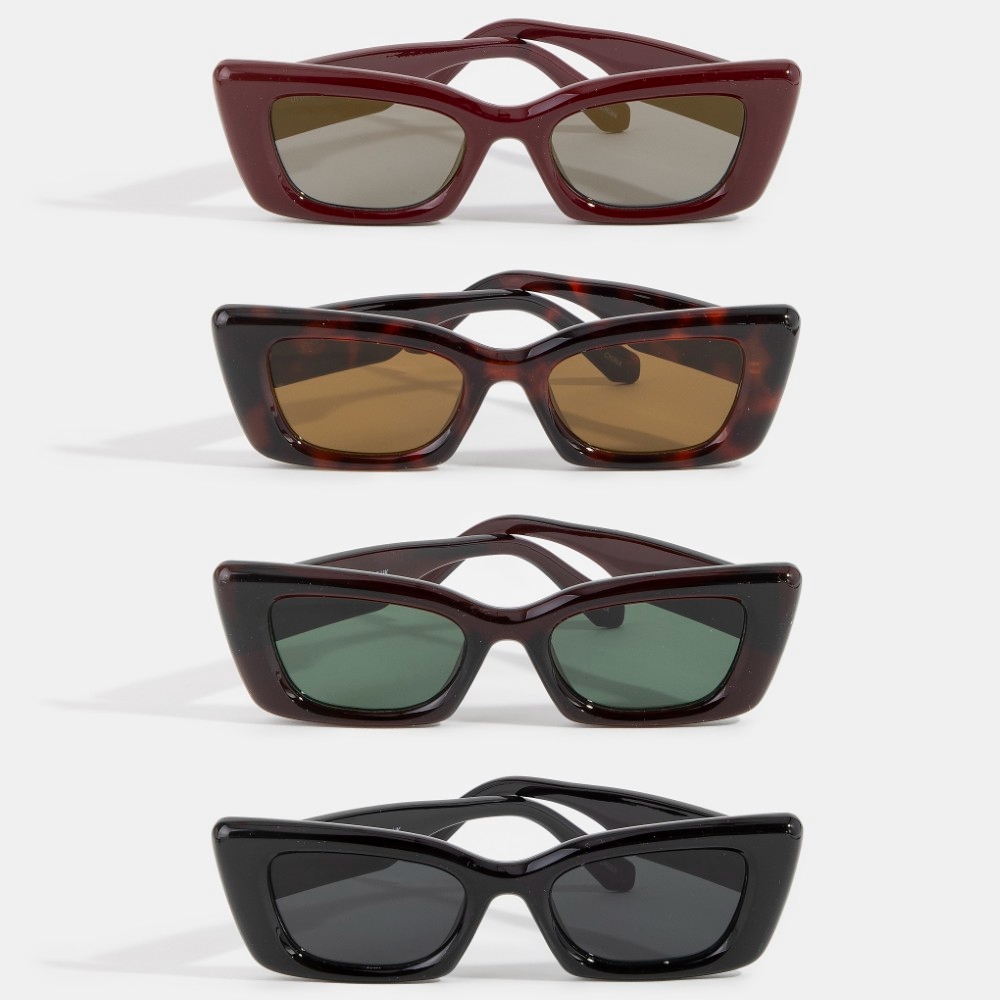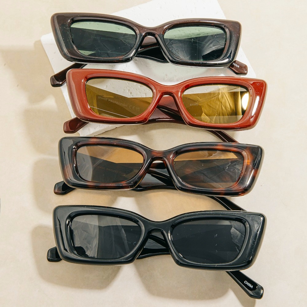 • Effortlessly elevate your outfit, this set of sunglasses contains a special bold chunky cat eye rectangle sunglasses set design. This set of sunglasses is an effortless way to add some personality to your outfit. This item is sold in packs of 12.