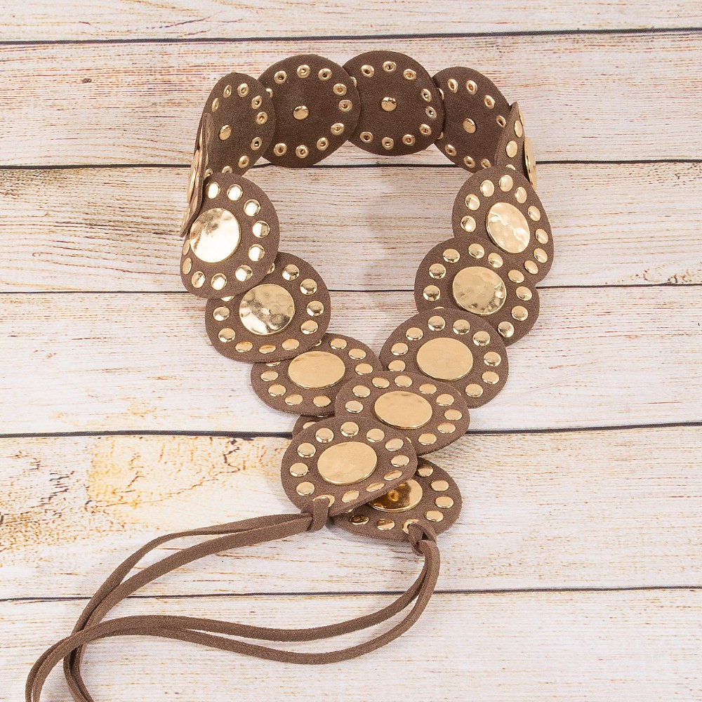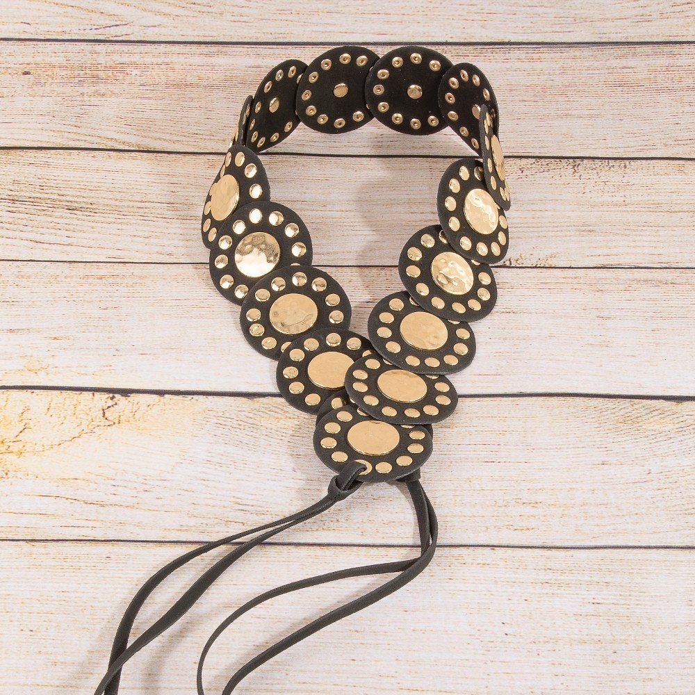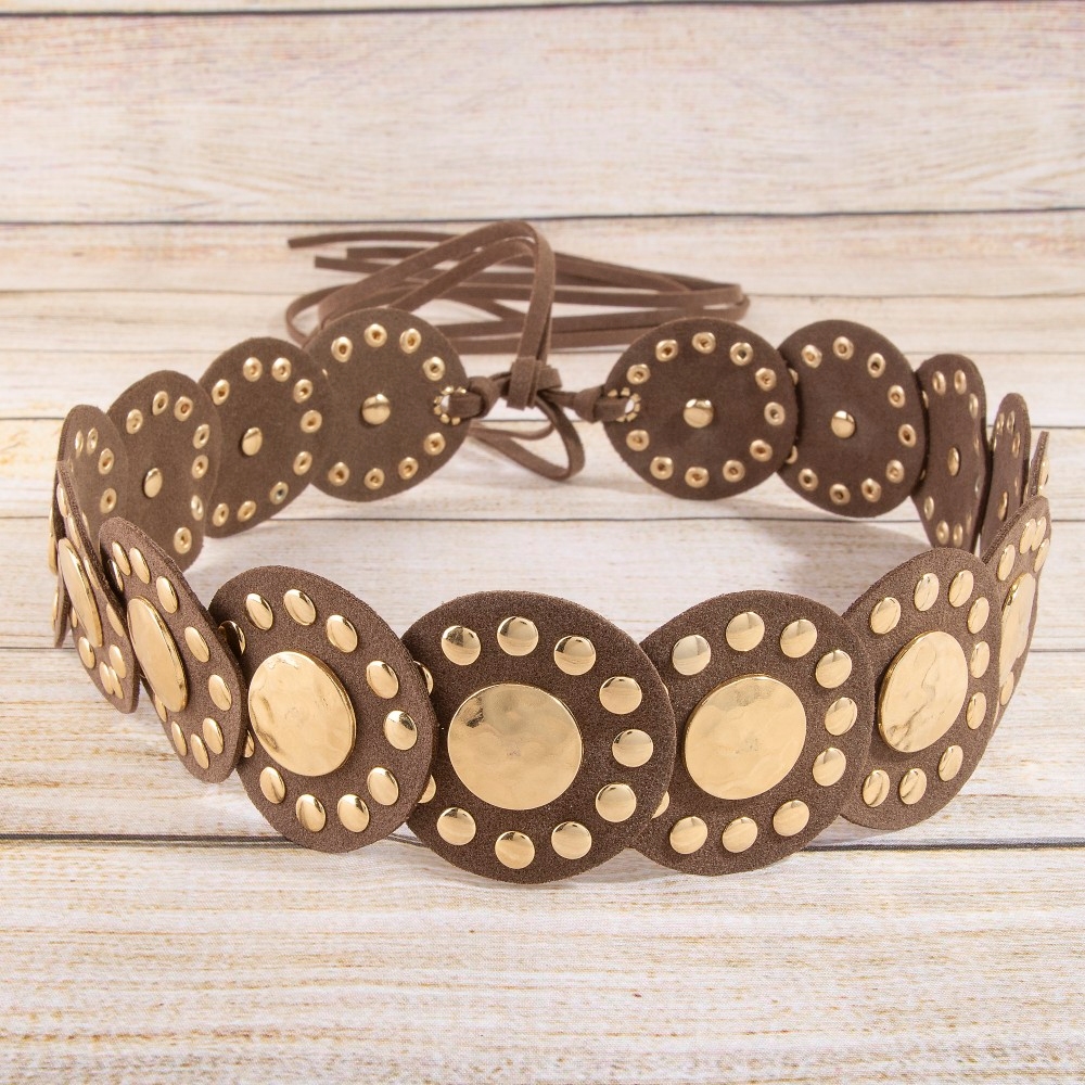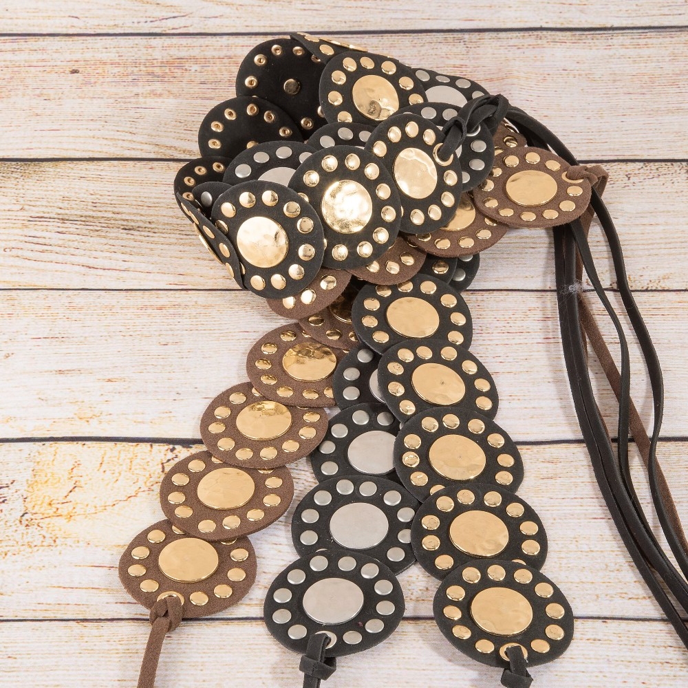 Western Concho Disc Wrap Vegan Leather Belt