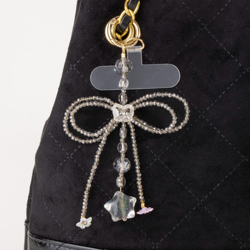 Black Crystal Beads Bag Charm