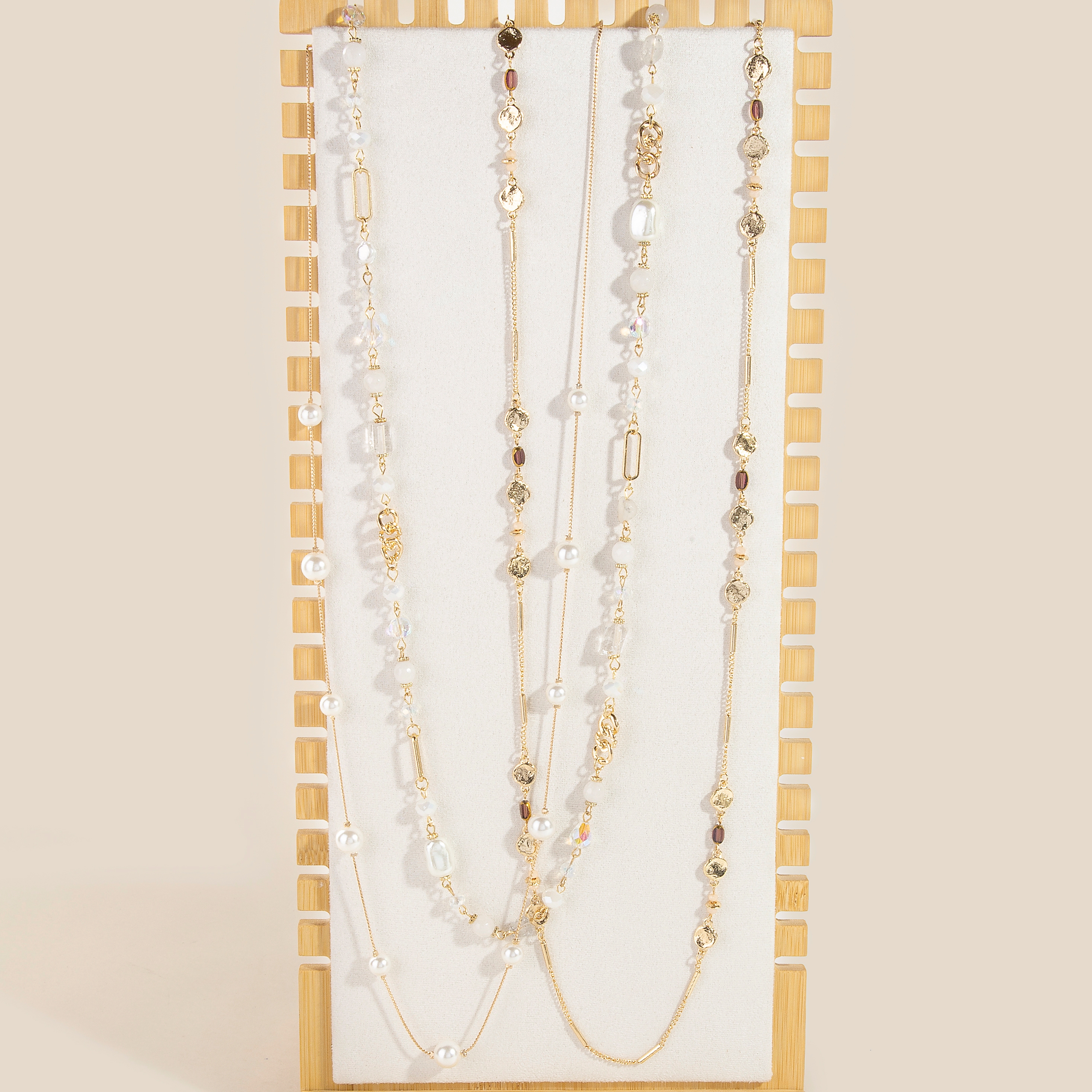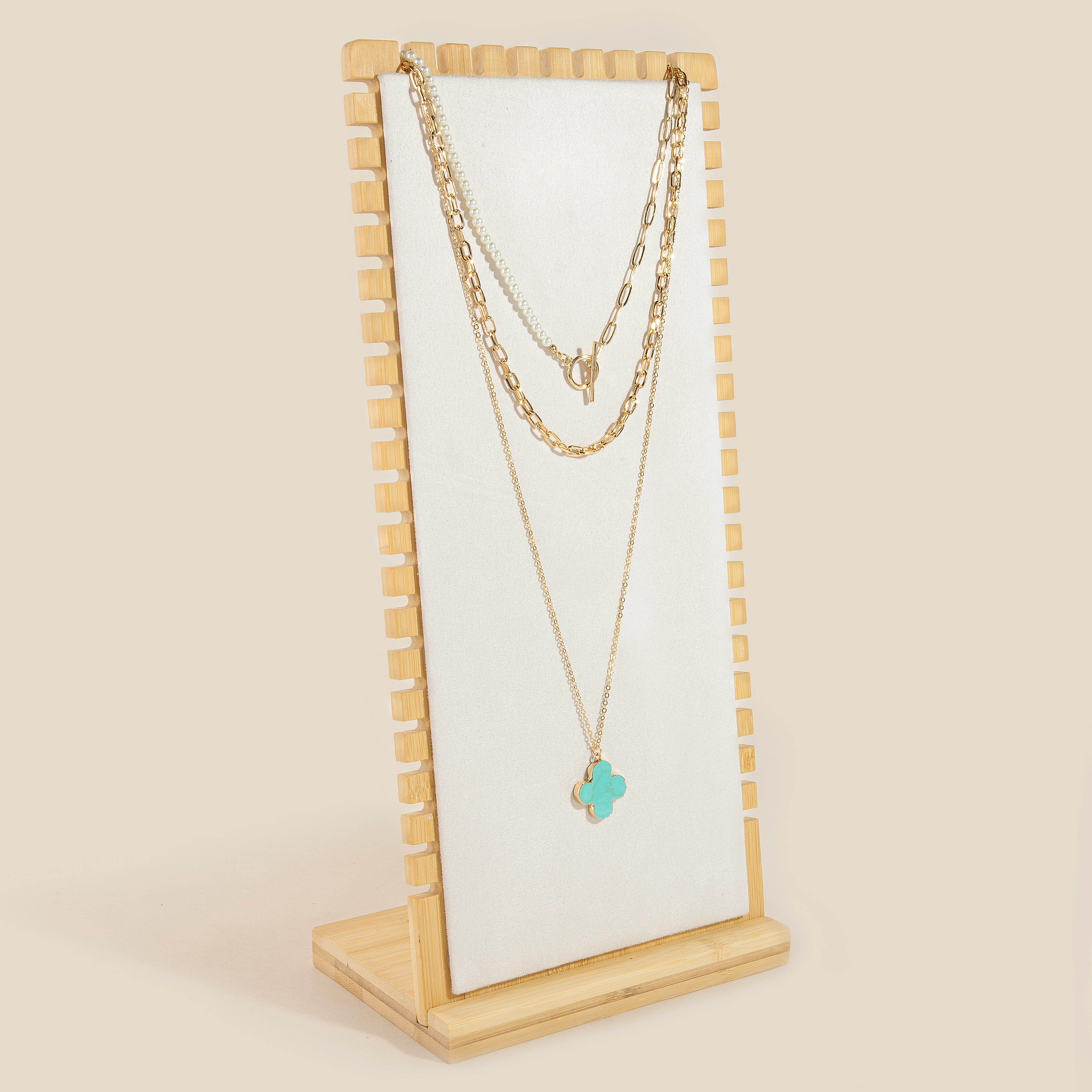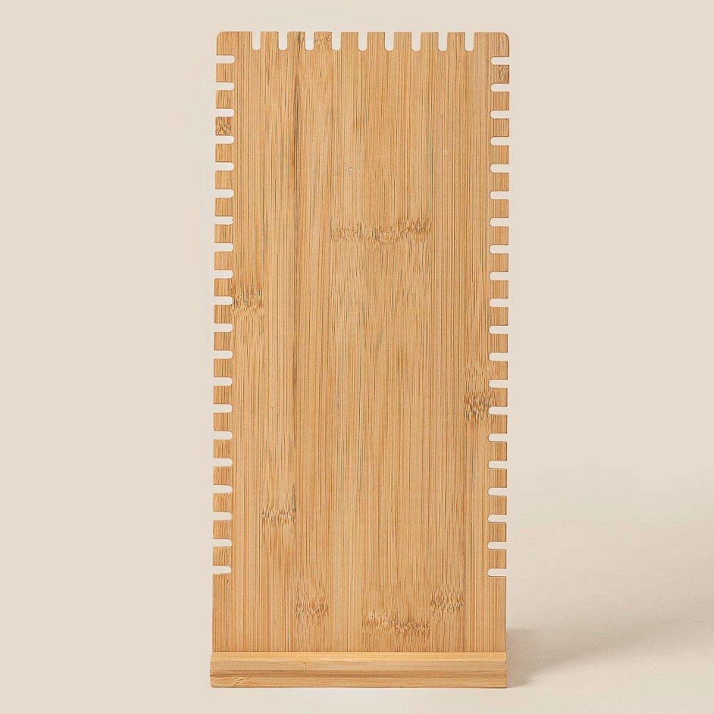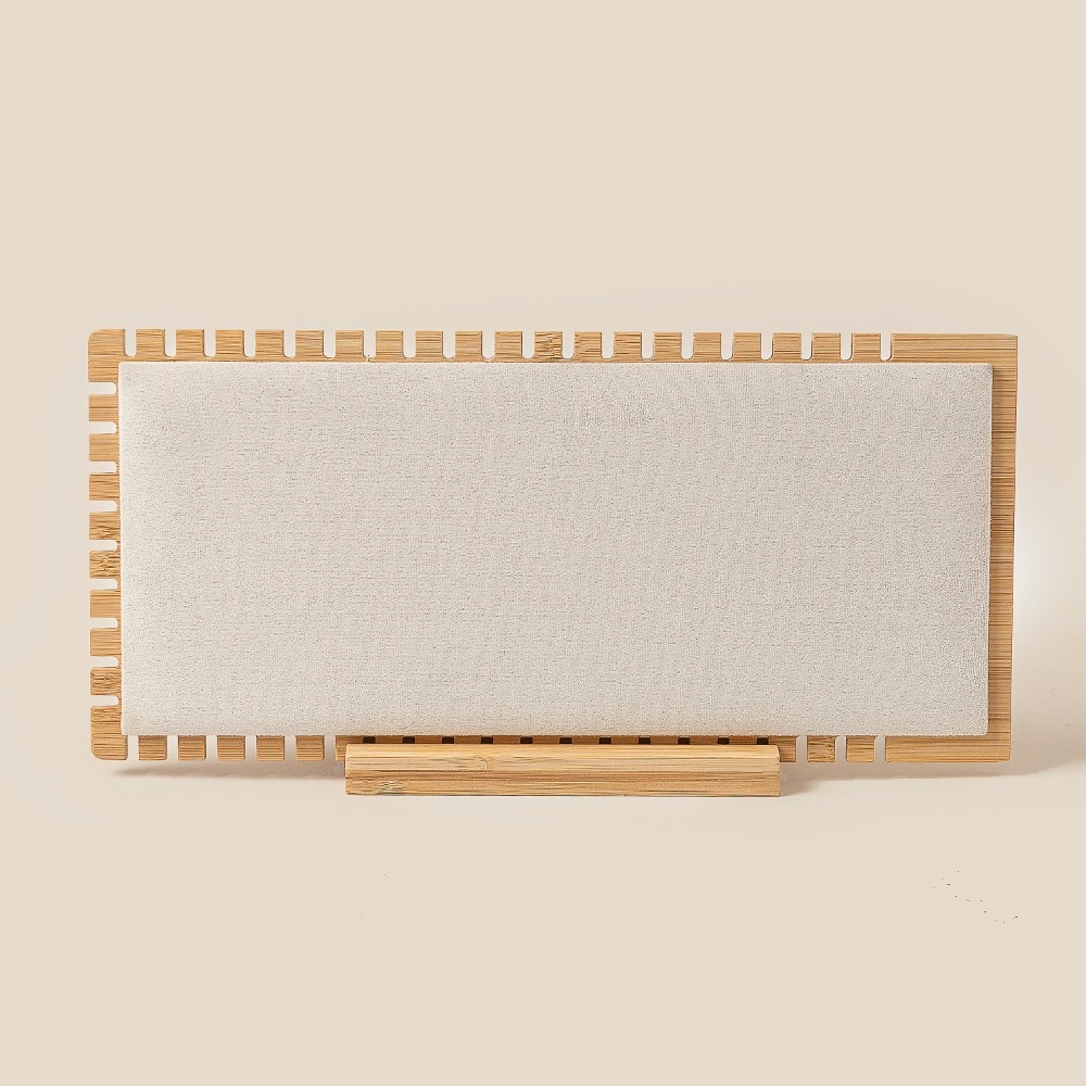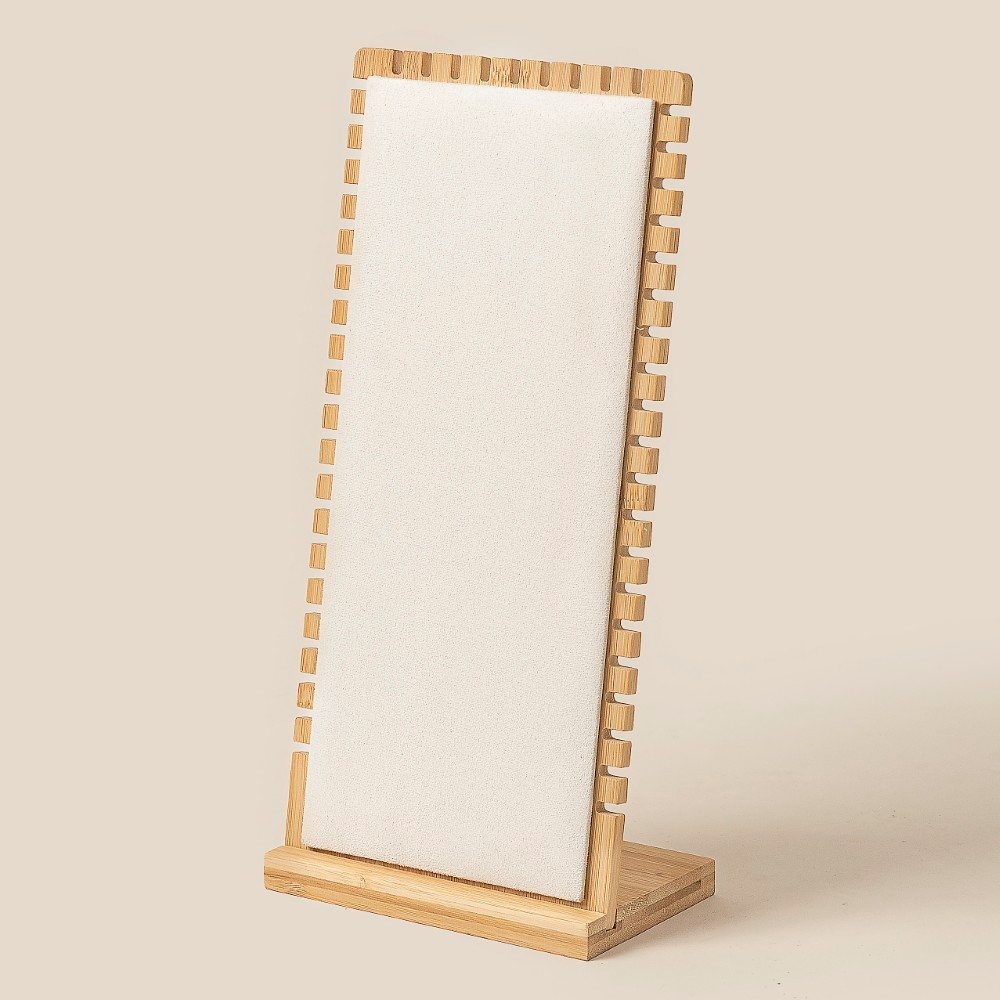- Stay ahead of the fashion curve, this accessory flaunts a luxurious elongated wooden rectangle jewelry display stand design. Unlock endless styling possibilities with this versatile accessory, creating a signature look that speaks volumes. Available in WOOD. This item is sold in packs of 1.