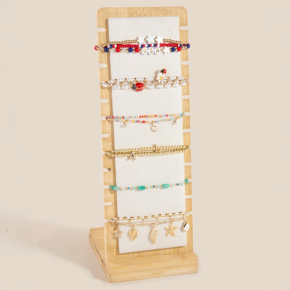 • This piece is a true showstopper, this accessory comes with a special long wooden jewelry display stand design. This accessory is a great way to add some glamour and sophistication to your outfit. Available in WOOD. This item is sold in packs of 1.