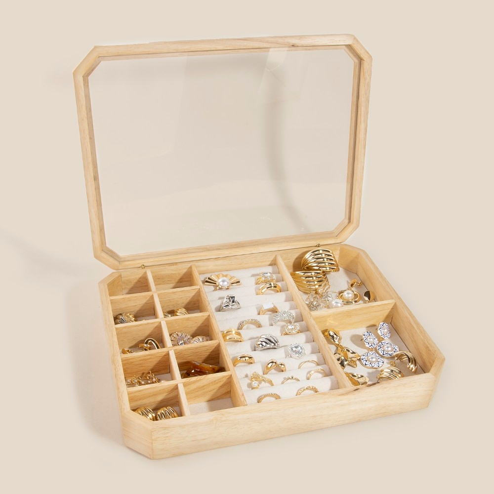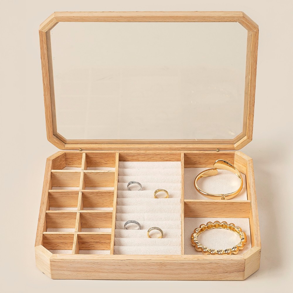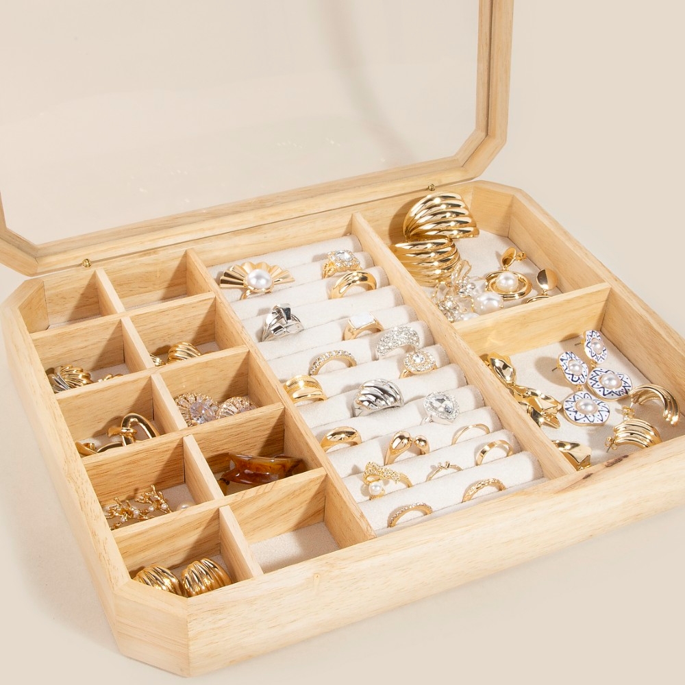 Perfectly polished and endlessly versatile, this accessory shows off a distinctive wooden jewelry display box showcase design. Perfect for adding a pop of color or texture to any outfit, this accessory is a must-have. Available in WOOD. This item is sold in packs of 1.