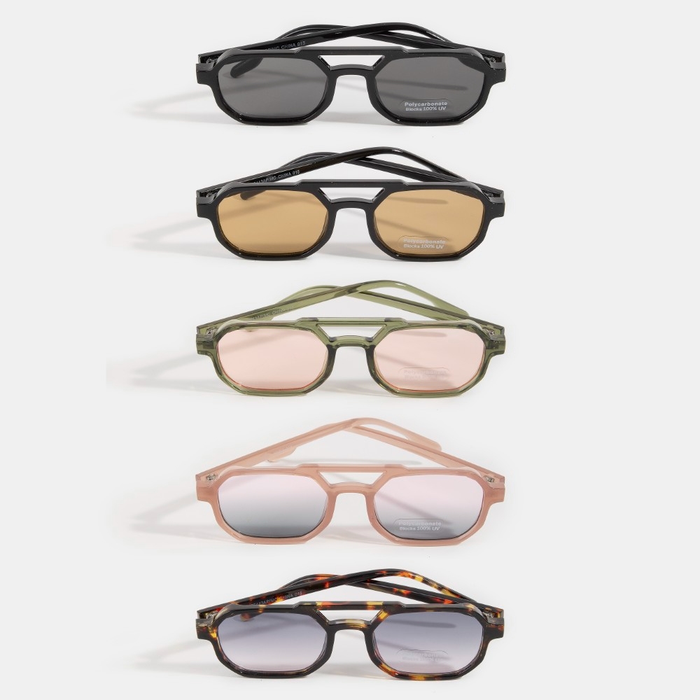 • A must-have addition to any set of sunglasses collection, this set of sunglasses contains a special double bridge polycarbonate sunglasses set design. This set of sunglasses is a great way to add some glamour and sophistication to your outfit. Available in ASSORTED and APMC. This item is sold in packs of 12.
