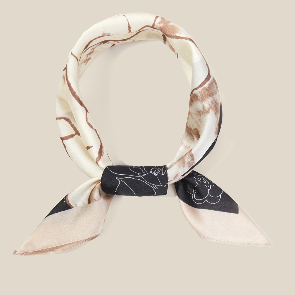 - This piece is perfect for those who want to showcase their unique style, this scarf radiates a sleek elegant flower print bandana design. Redefine your fashion identity with this versatile scarf, a timeless piece that complements any wardrobe. Available in BE, BK. This item is sold in packs of 3.