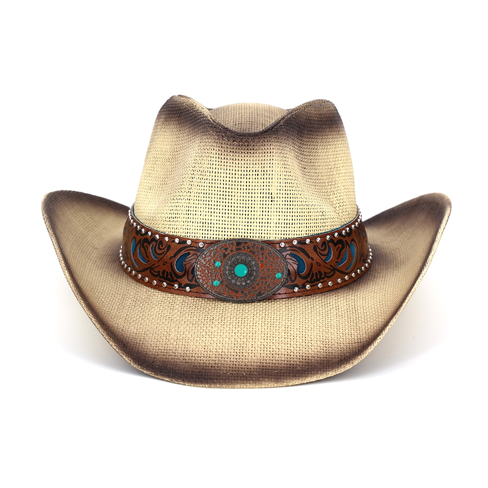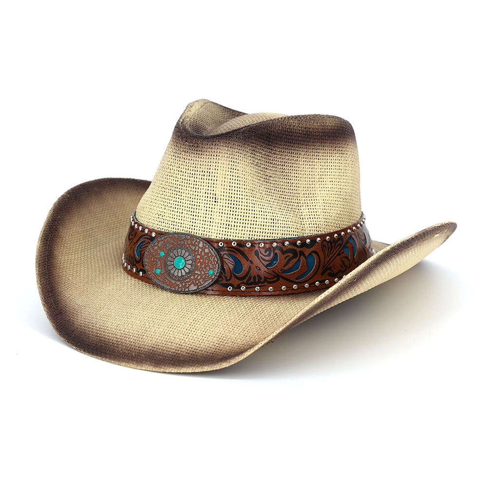 This piece is a true showstopper, this cowboy hat encompasses a grand floral concho band two tone straw design. Perfect for adding a pop of color or texture to any outfit, this cowboy hat is a must-have. Available in BE, DB, TP. This item is sold in packs of 1.