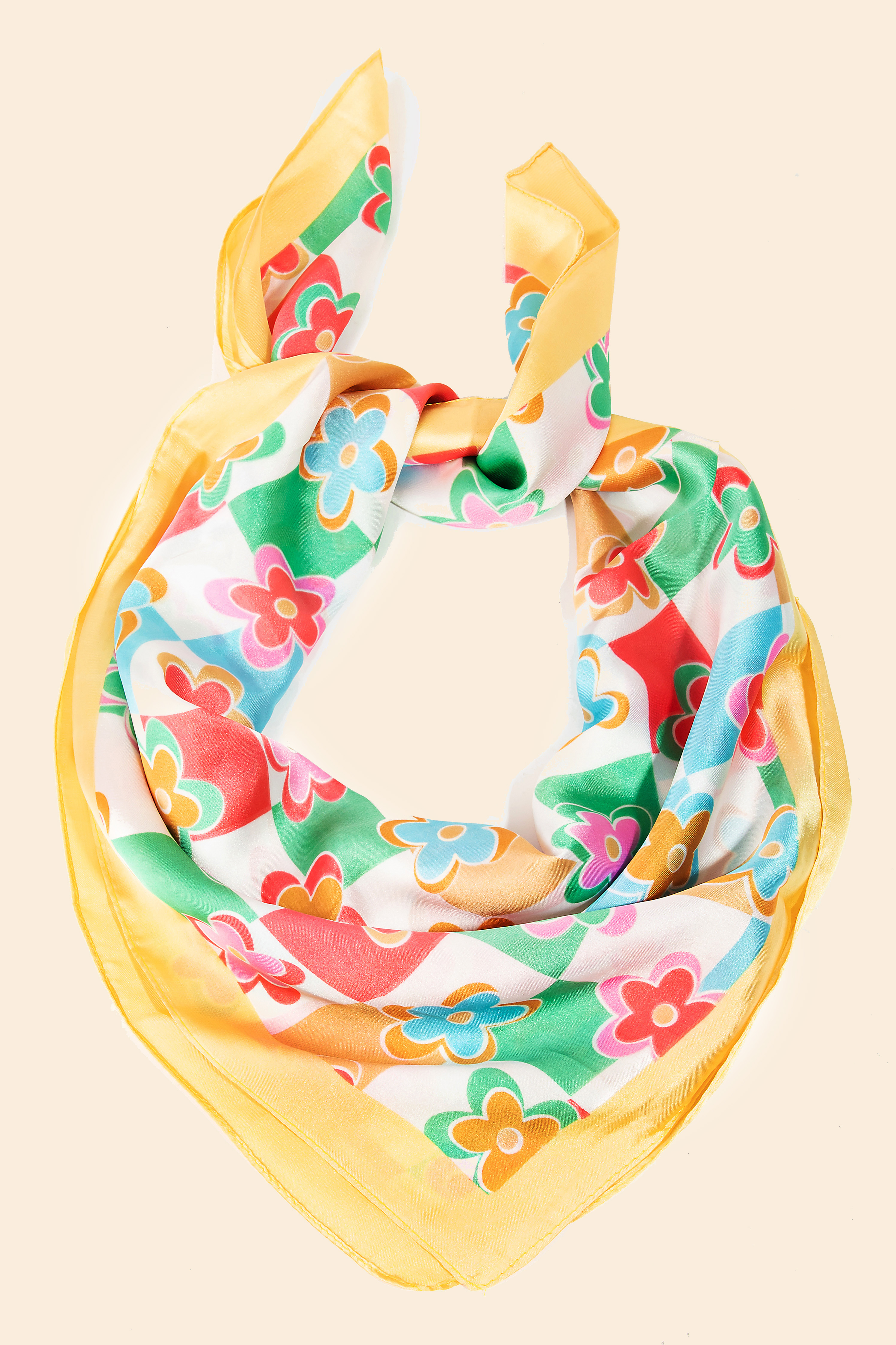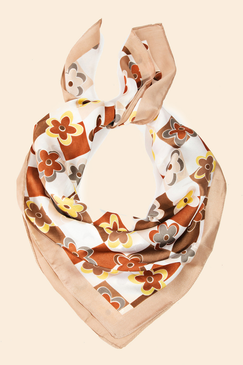 • Effortlessly elevate your outfit, this scarf features a distinct floral print square design. Achieve a perfect balance of style and sophistication with this versatile accessory, the ultimate choice for the fashion-savvy individual. Available in BE, OR, PU and YE. This item is sold in packs of 3.