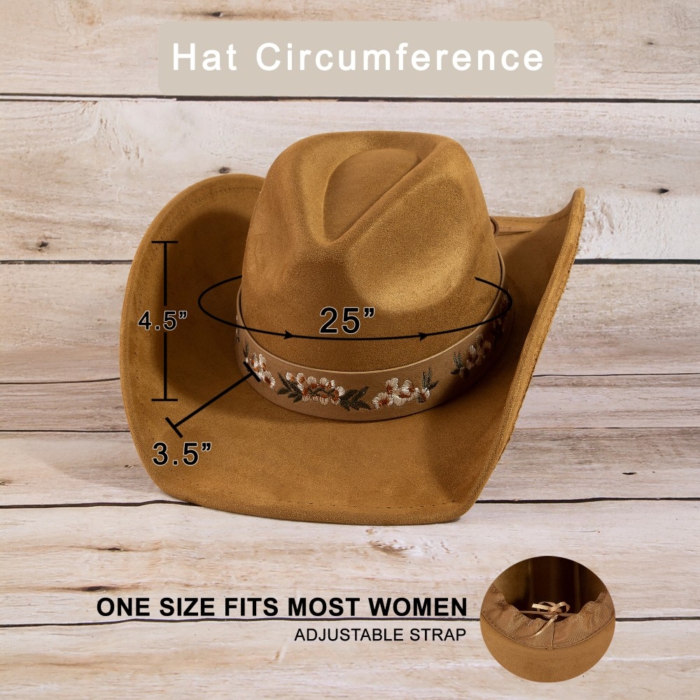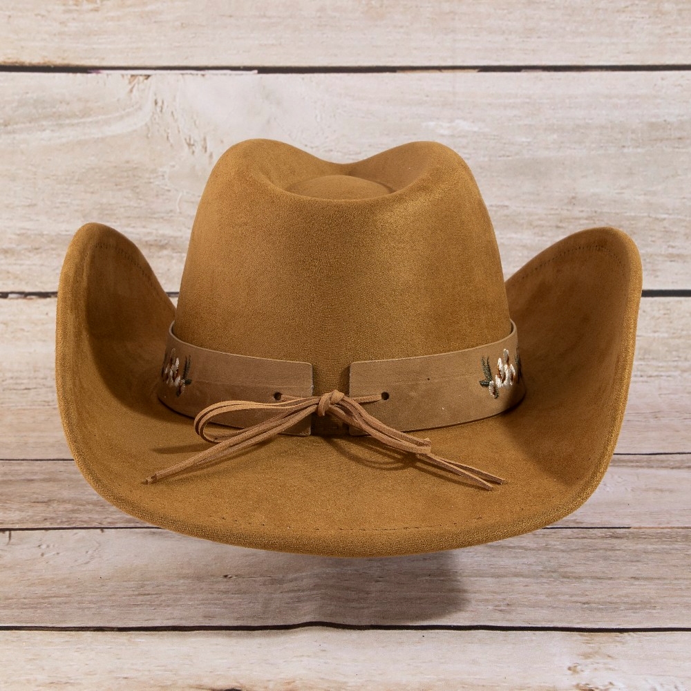Add a touch of elegance and glamour to your look, this cowboy hat flaunts a luxurious flower pattern strap design. A must-have cowboy hat for anyone who loves to add some flair to their outfits. Available in BR,IV. This item is sold in packs of 1.