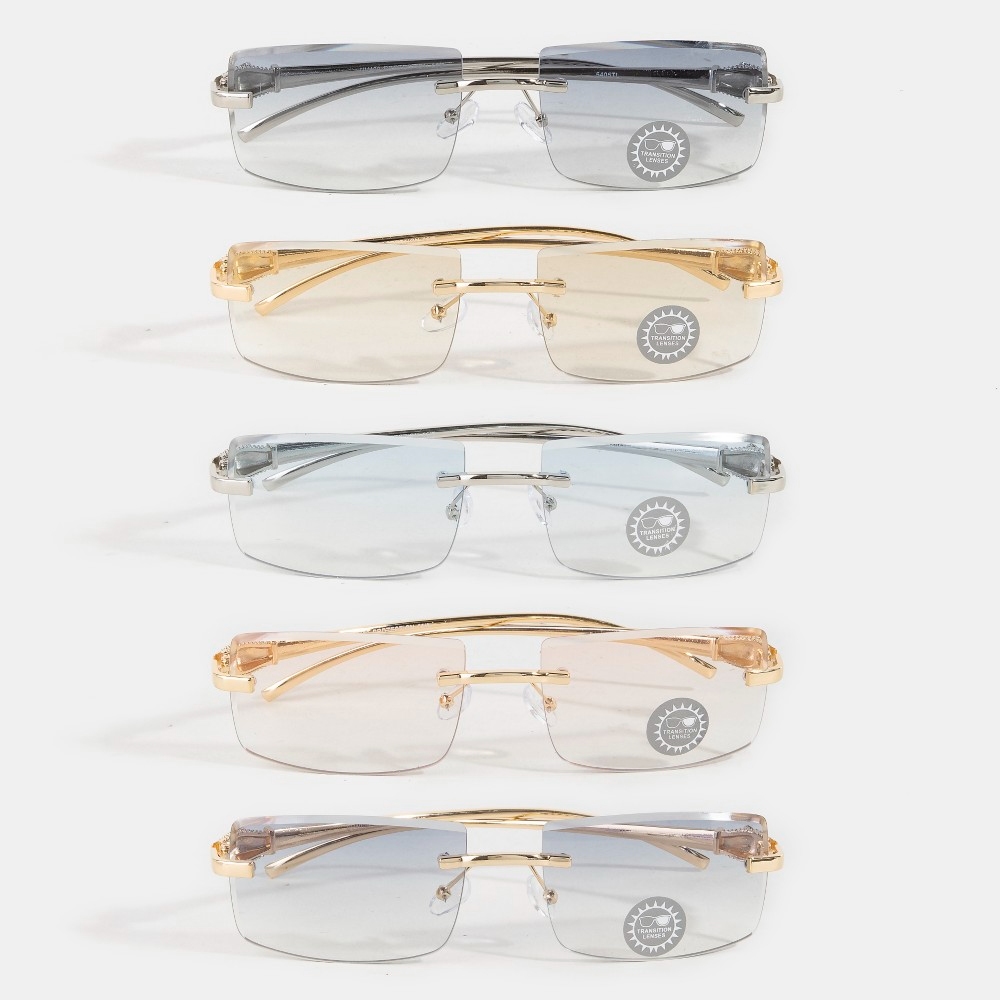 Sleek and modern, this set of sunglasses emanates an elegant frameless transition lenses sunglasses set design. Elevate your fashion game with this versatile set of sunglasses, seamlessly integrating into your signature style. Available in ASSORTED. This item is sold in packs of 12.