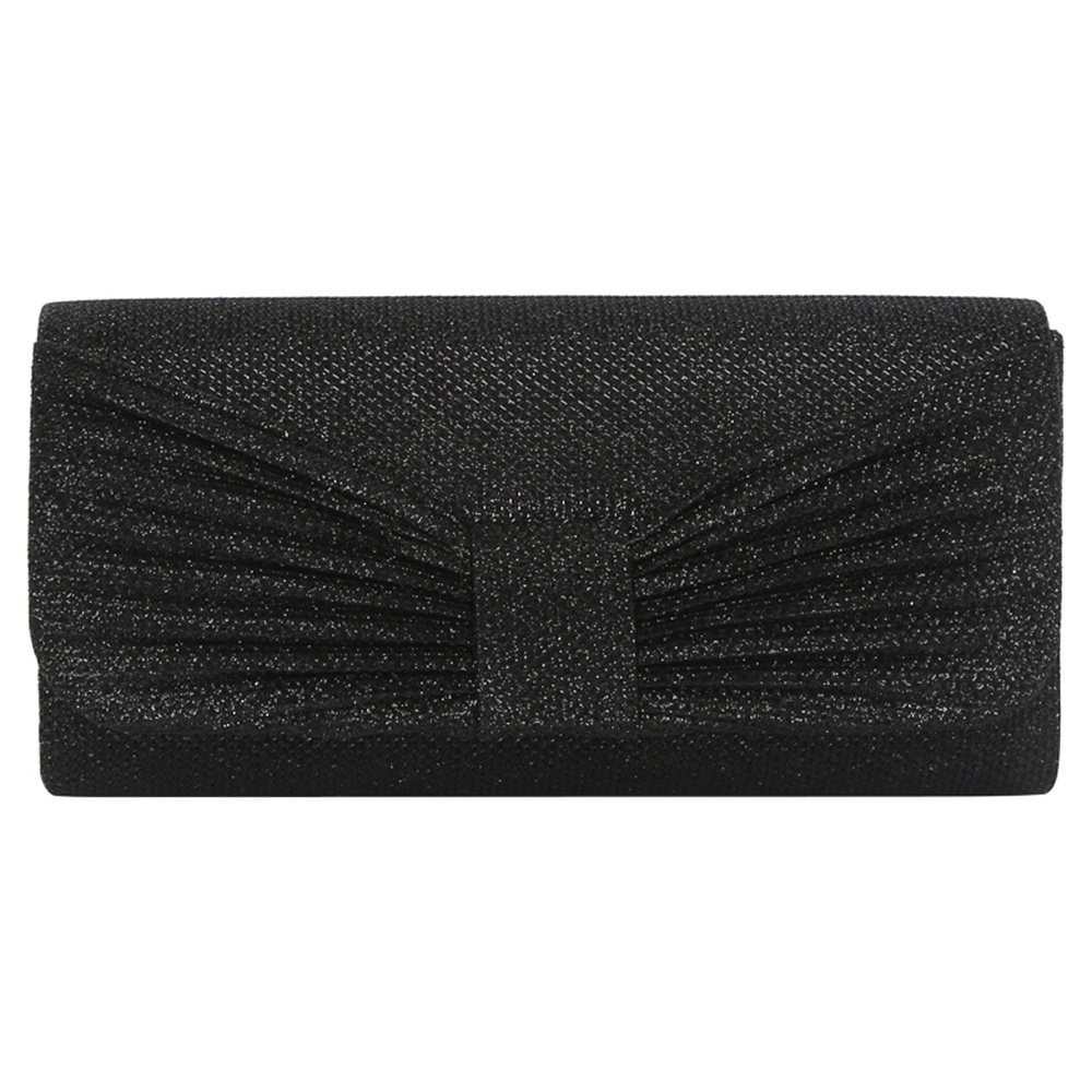 This piece is perfect for those who want to showcase their unique style, this clutch bag shows off a distinctive glitter bow pleated design. Redefine your wardrobe with this versatile clutch bag, a timeless addition that brings an air of sophistication to any look. Available in BK. This item is sold in packs of 1.