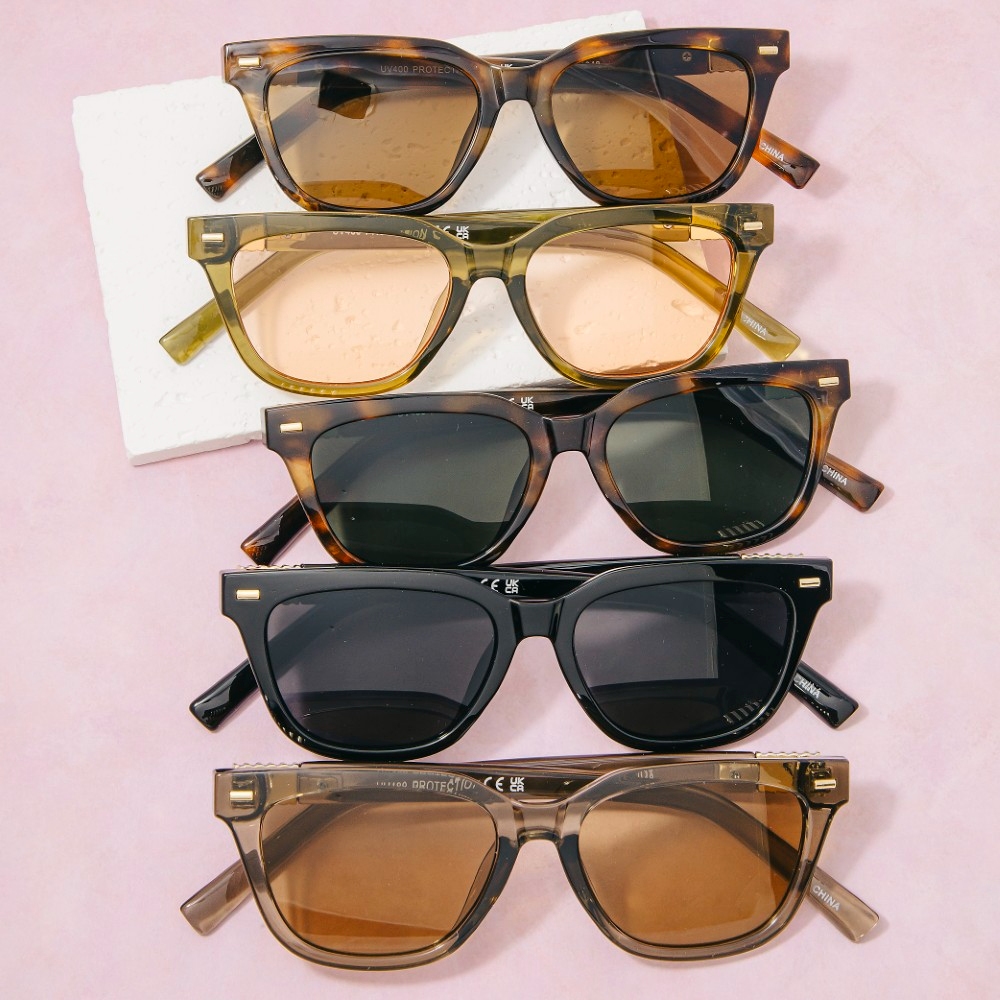 The perfect way to add some sparkle to your outfit, this set of sunglasses features a distinct gold accent bold square frame sunglasses set design. Elevate your fashion game with this versatile set of sunglasses, seamlessly integrating into your signature style. This item is sold in packs of 12.