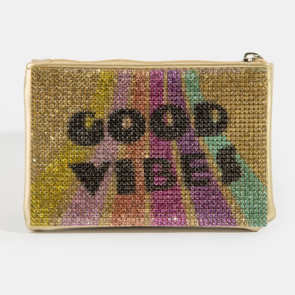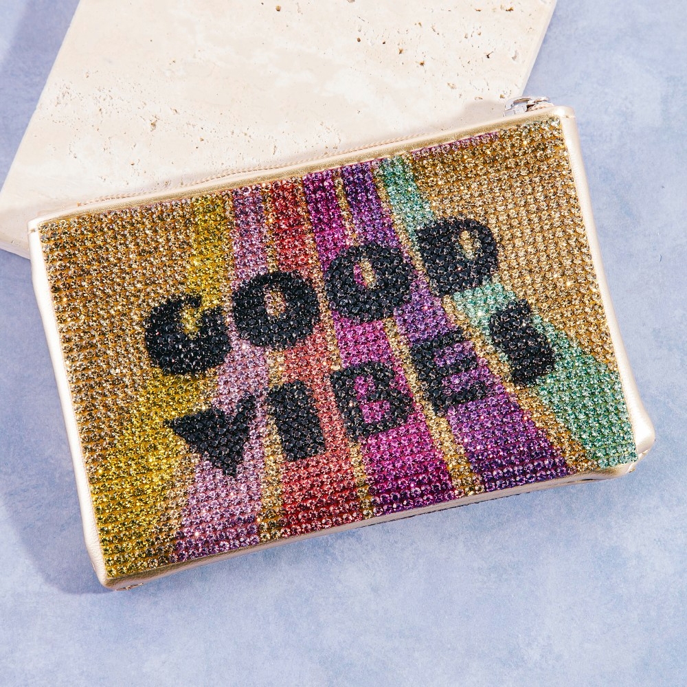 • Effortlessly elevate your outfit, this coin purse presents a striking good vibes pave design. Transform your outfit into a fashion masterpiece with this versatile coin purse, an essential for the style-conscious individual. This item is sold in packs of 1.