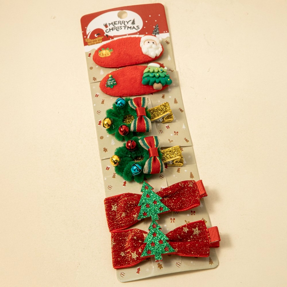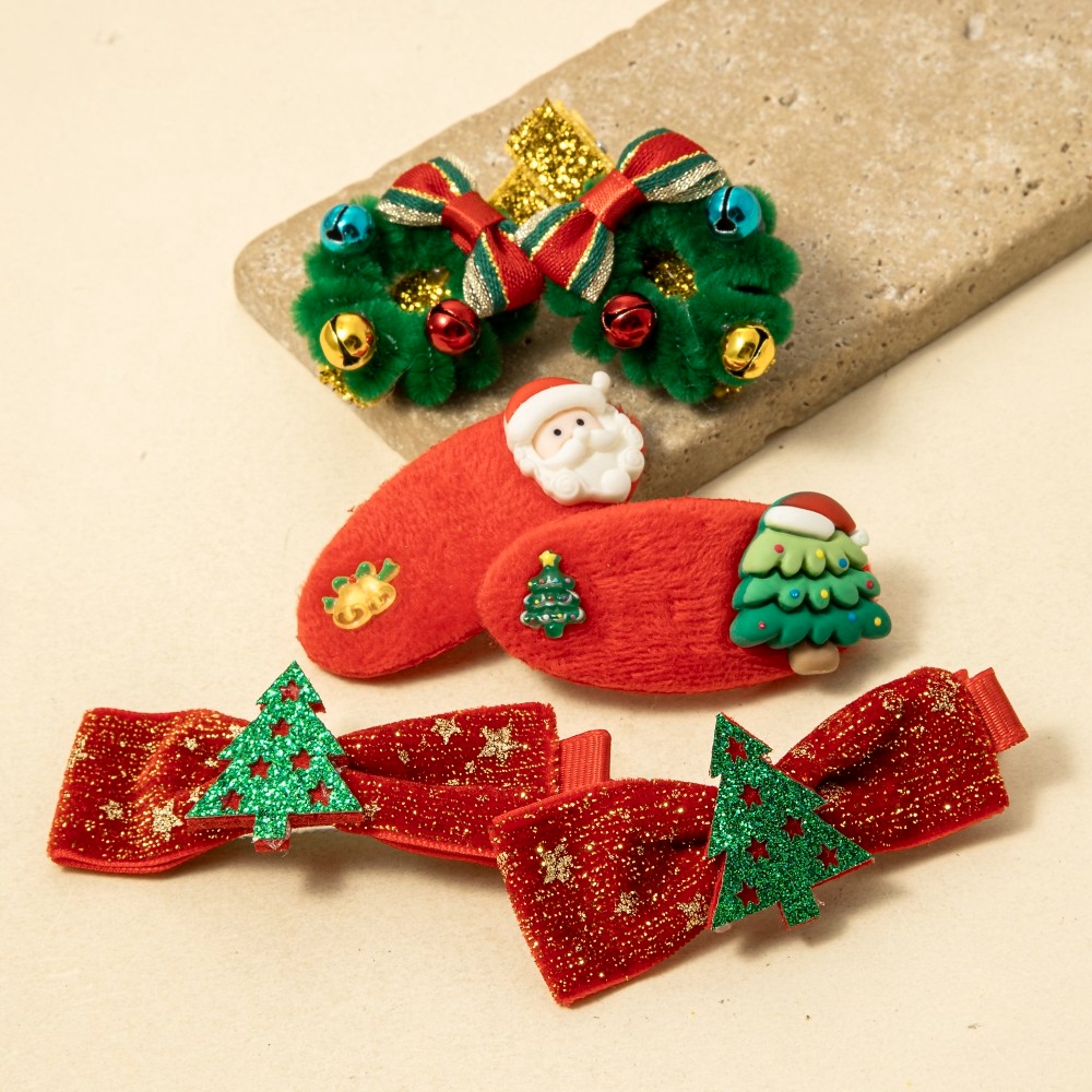 6Pc Assorted Festive Christmas Theme Hair Clip Set