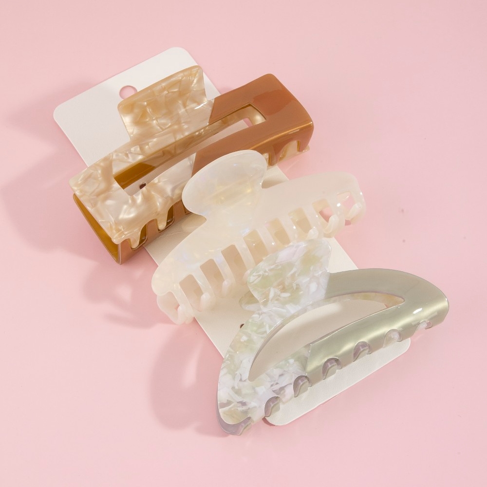 This piece is the perfect way to add some glamour to your look, this encompasses a grand acetate three piece hair claw set design. Achieve a perfect balance of style and sophistication with this versatile , the ultimate choice for the fashion-savvy individual. Available in MU. This item is sold in packs of 1.