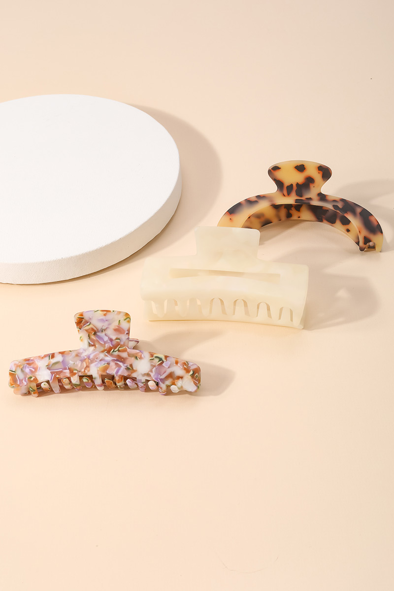 In season trending must have hair claw features a unique 3 piece mixed acetate hair claws design. Perfect as a gift for a loved one! Available in MU.