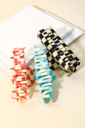Three Piece Checkered Hair Clips Set