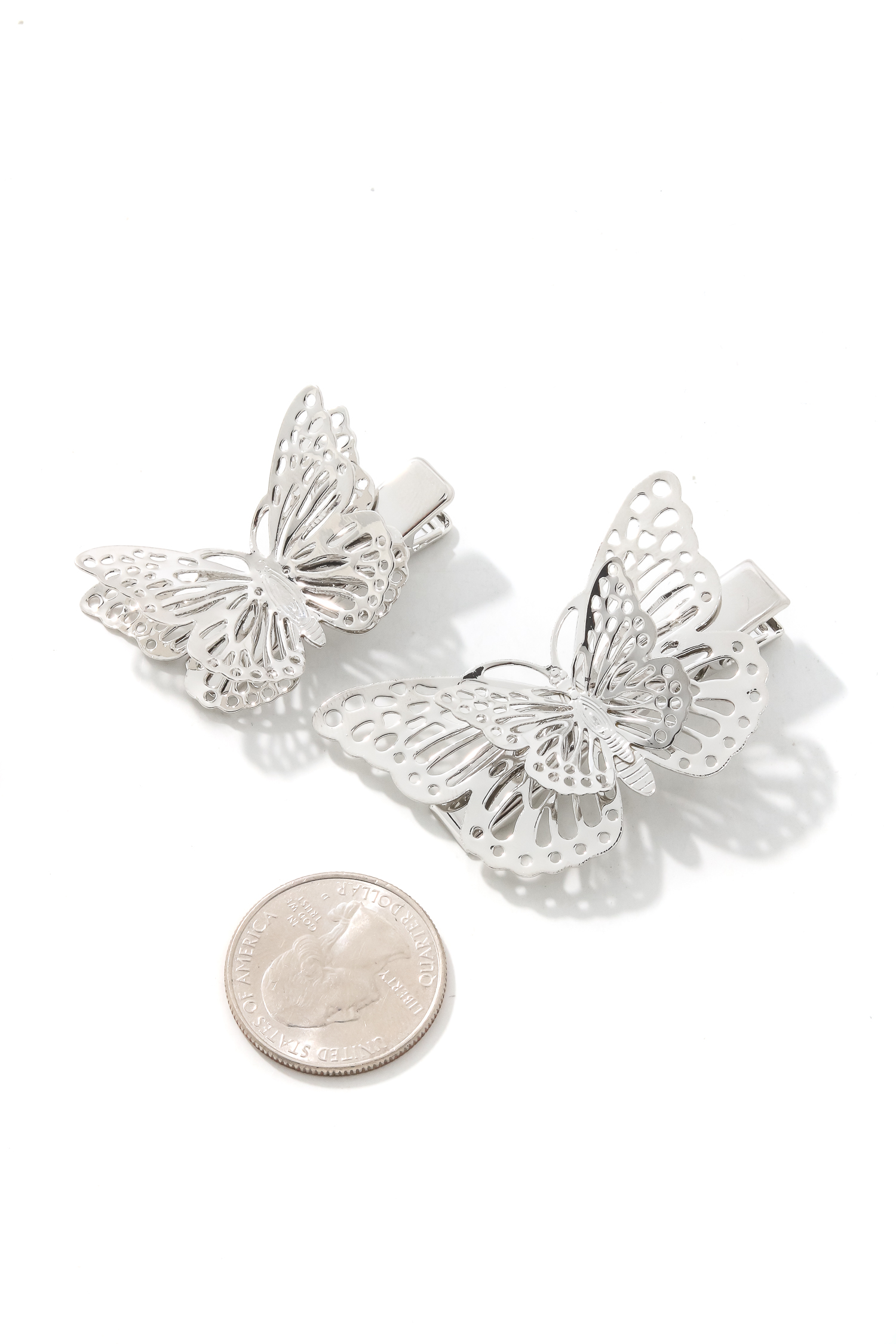 A classic stunning flashy trending must have hair clip features a unique butterfly hair clip set design. This matches almost any outfit you have planned! Available in Silver.