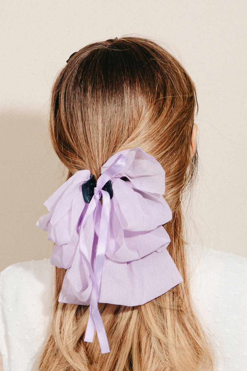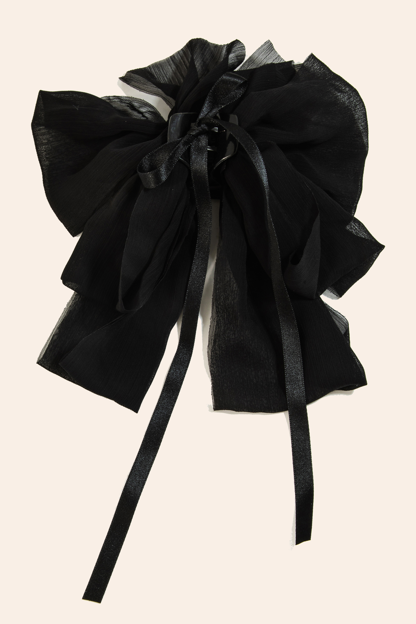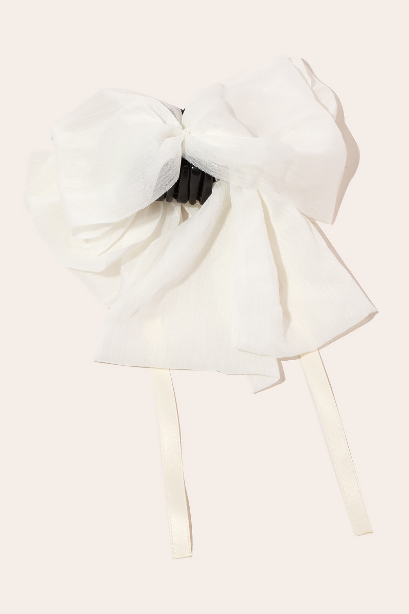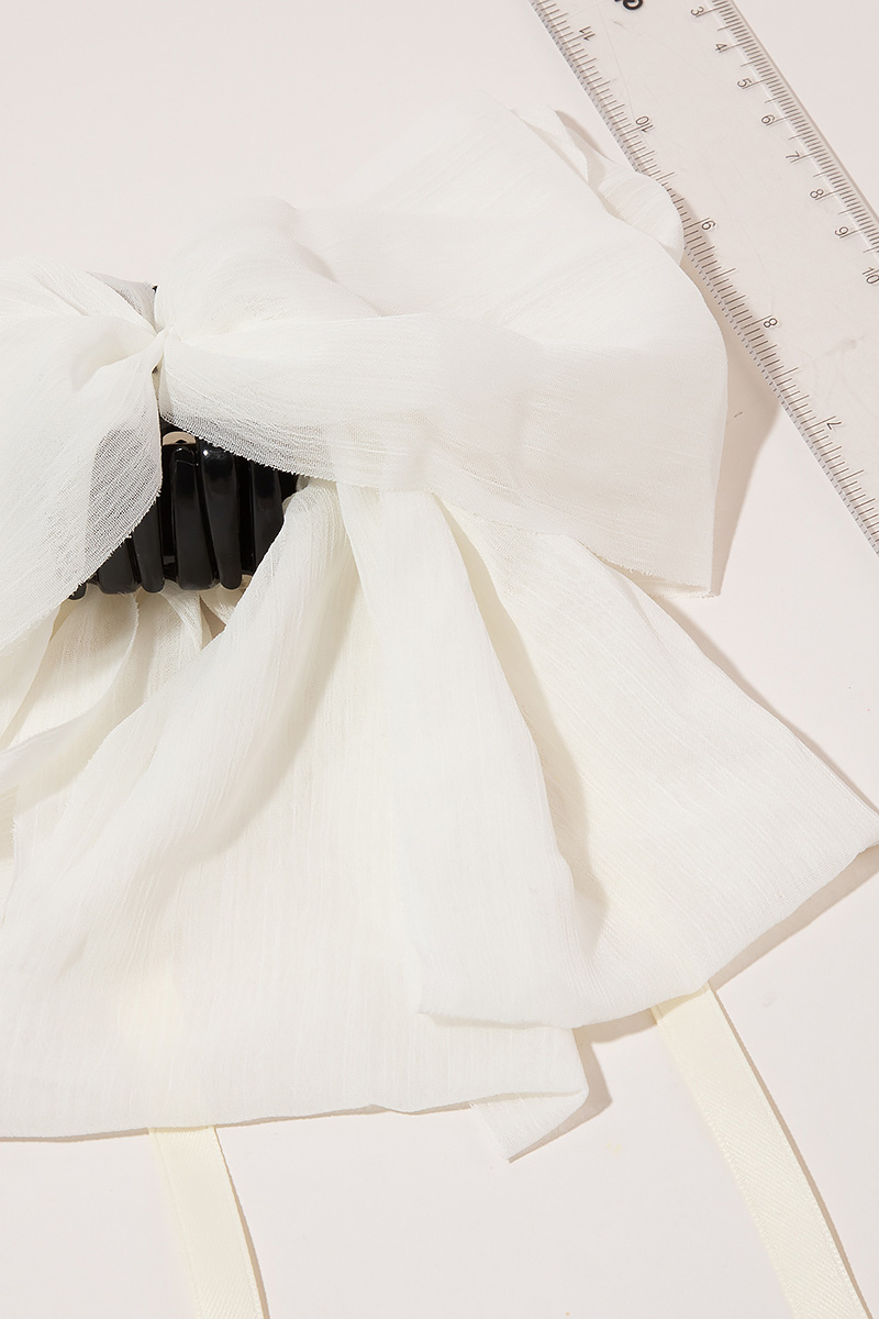 • This season's hottest accessory, this hair claw emanates an elegant dainty fabric ribbon bow design. Make a lasting impression with this versatile accessory, a subtle yet impactful addition to your fashion repertoire. Available in BK, IV and PU. This item is sold in packs of 1.