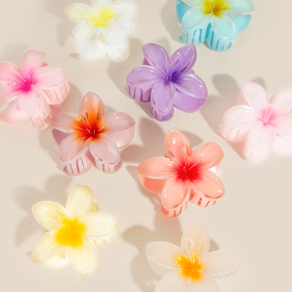 Bold, daring, and endlessly stylish, this hair claw incorporates a remarkable hawaiian flower design. This item is perfect for adding some color and vibrancy to any outfit. Available in BL, PK, PU, WH, BS, HPK, PKWH, YE and YEOR. This item is sold in packs of 1.