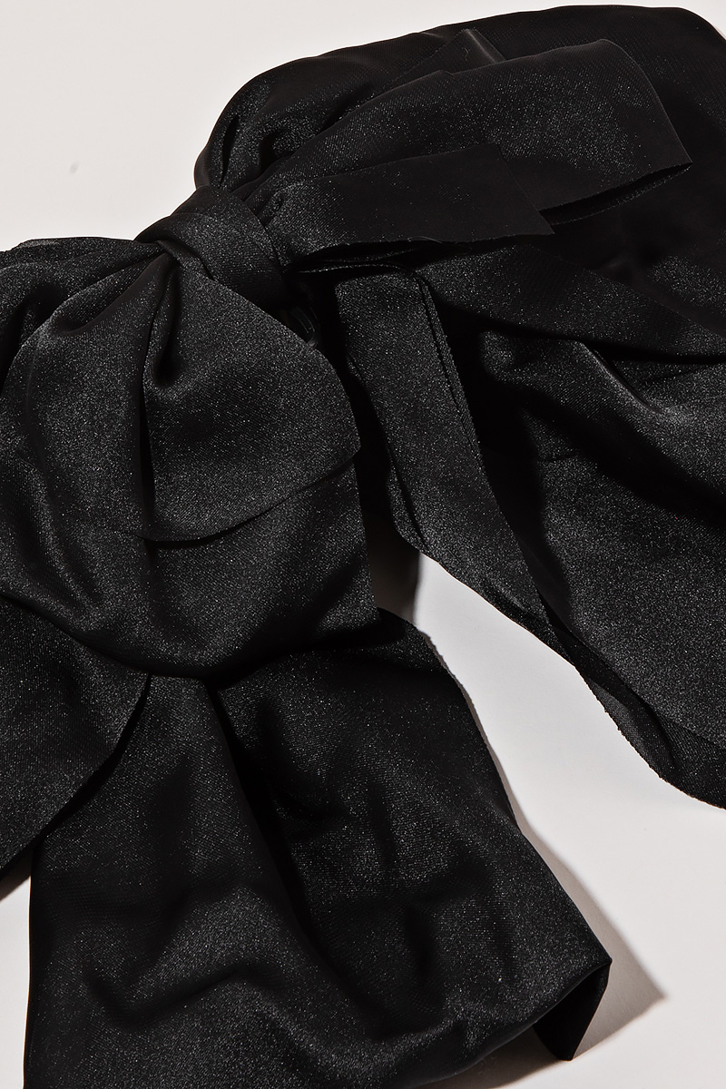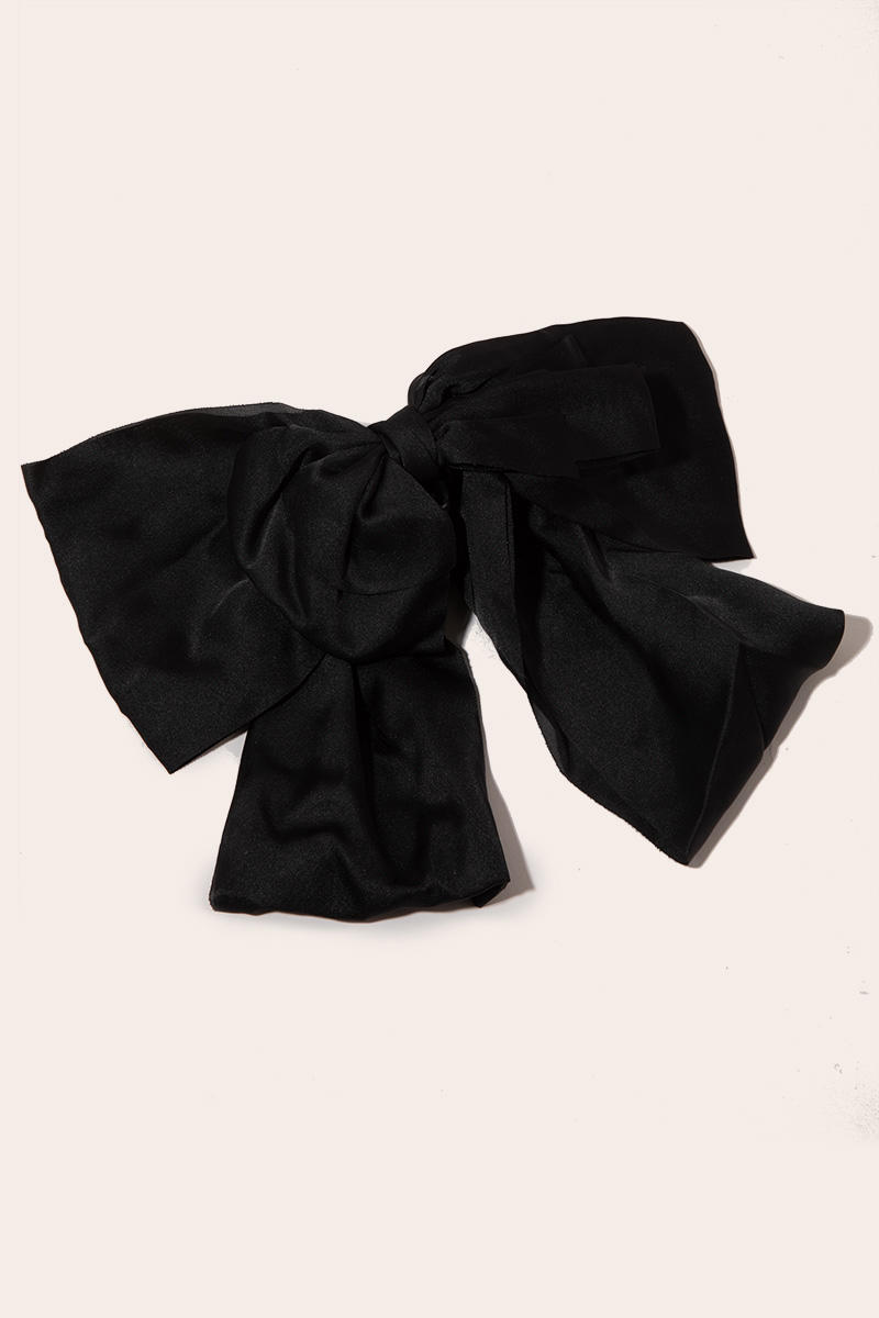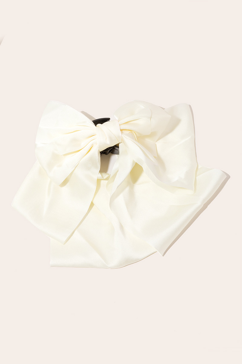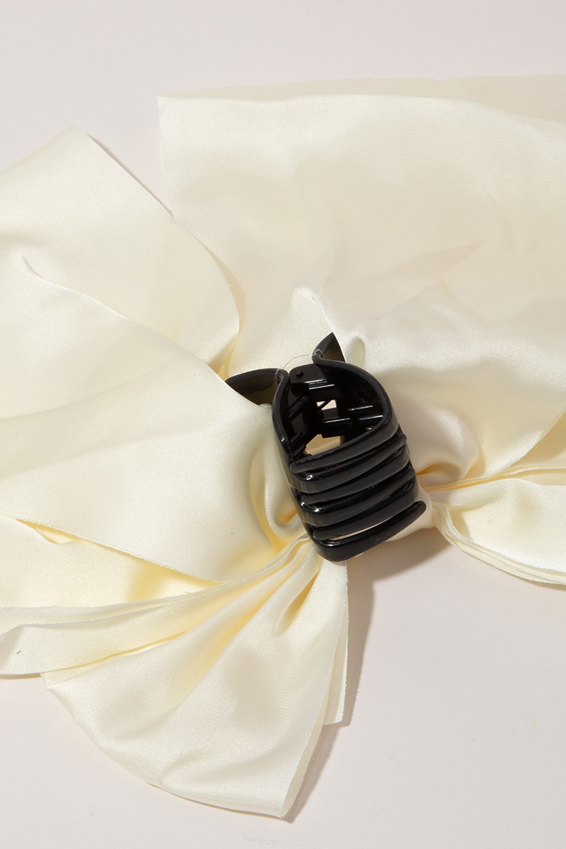 • The perfect way to add some sparkle to your outfit, this hair claw embodies a sophisticated large satin fabric ribbon bow tie design. Elevate your style effortlessly with this versatile accessory, enhancing the appeal of any ensemble. Available in BK, IV and PK. This item is sold in packs of 1.