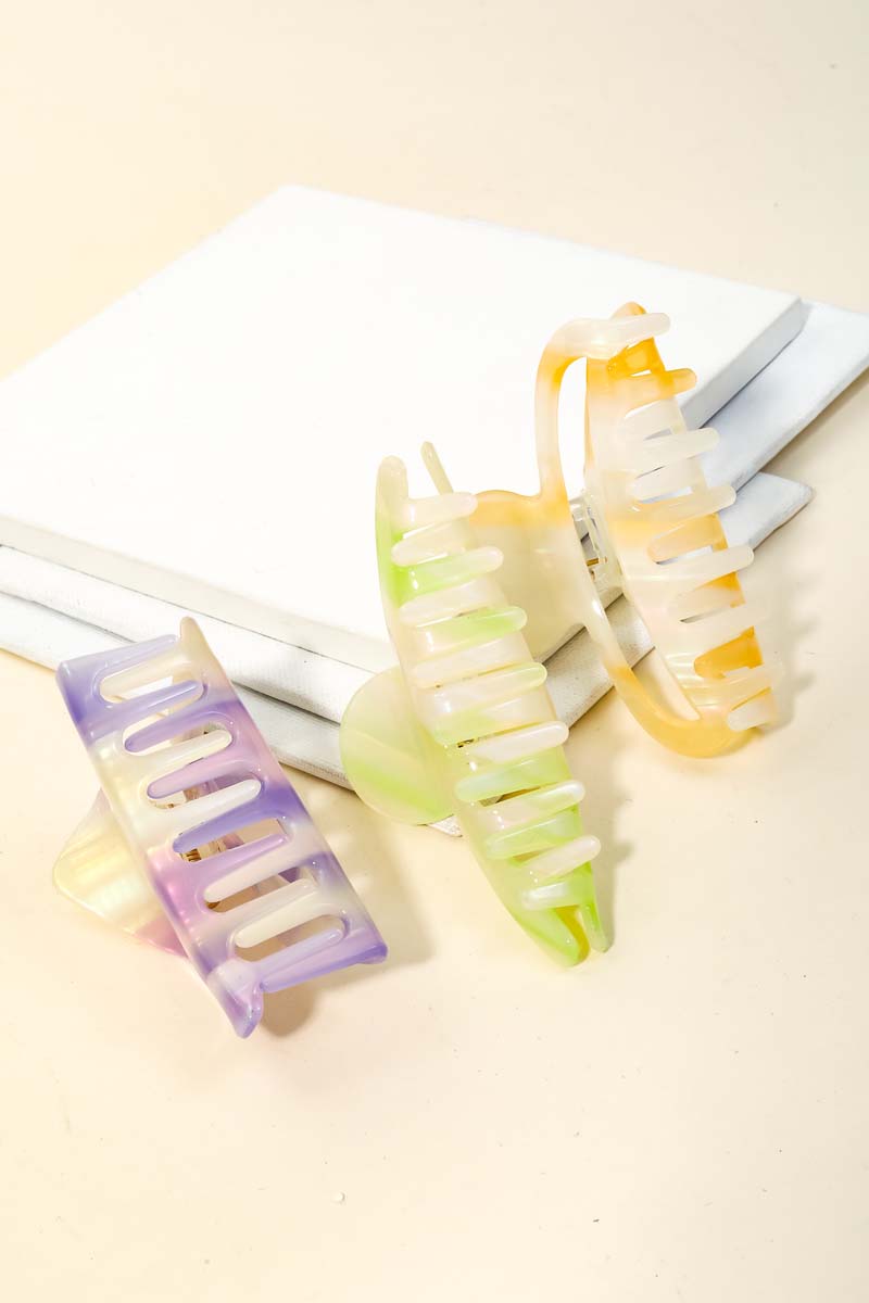 A popular giftable hair claw has a beautiful three piece striped pattern acetate hair claw set design. This is an absolute must have for any wardrobe.