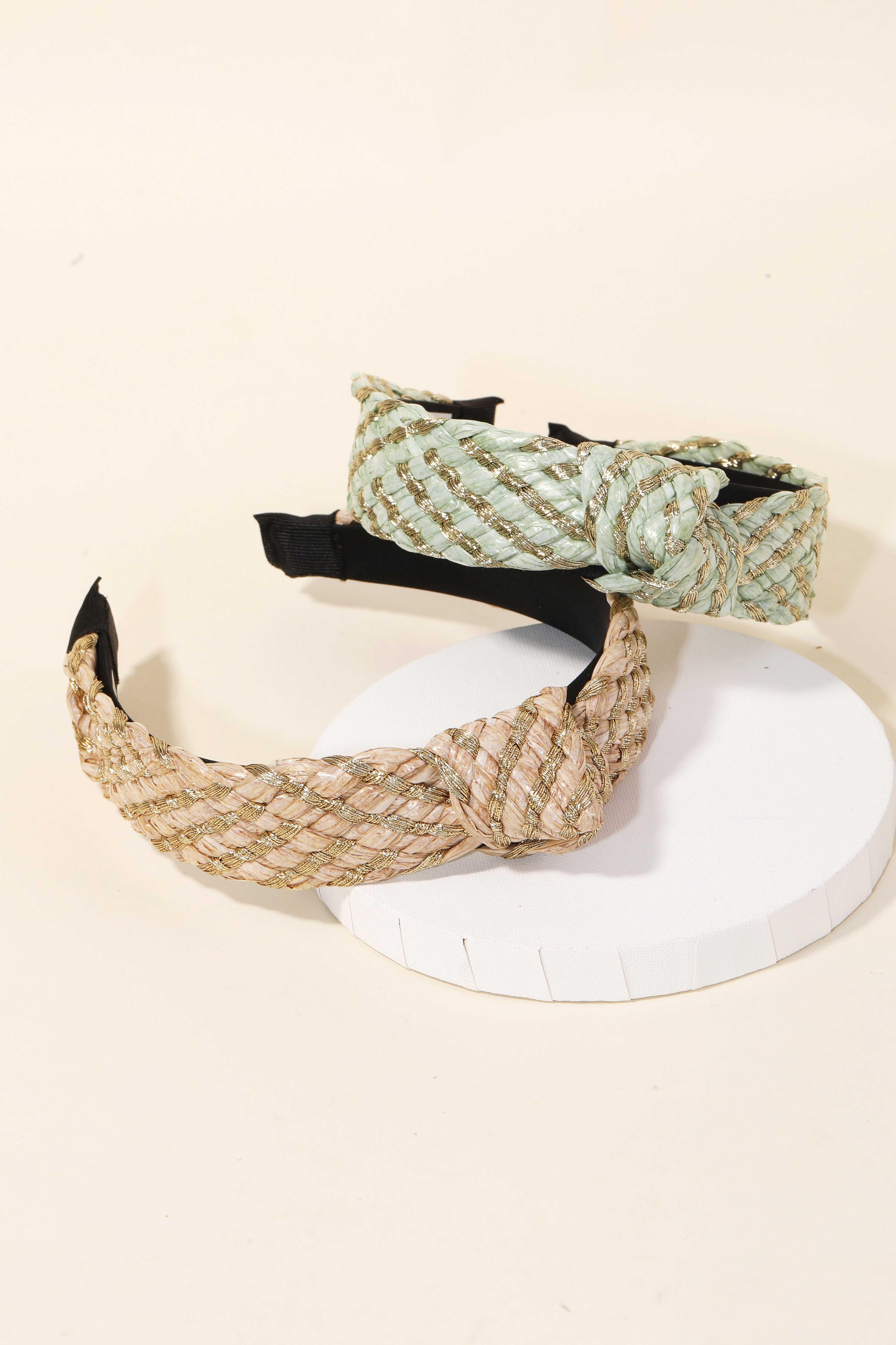 Guaranteed to add a touch of glamour to any outfit, this headband highlights a special striped braided twist set design. Transform your outfit into a fashion masterpiece with this versatile accessory, an essential for the style-conscious individual. This item is sold in packs of 1.