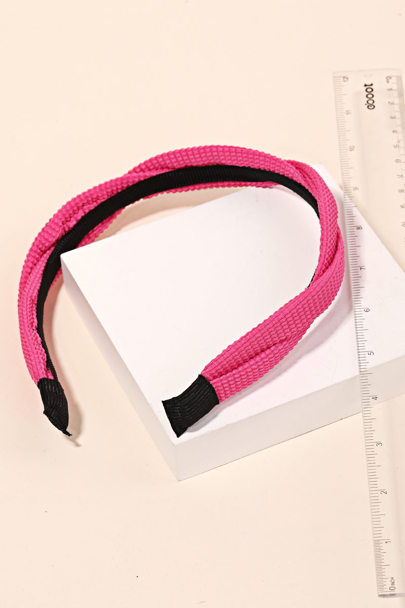 - Add a touch of glamour to any outfit with this headband reveals an intricate thin rib twist headband design. This accessory is ideal for both casual and formal events, adding a touch of sophistication to any outfit. Available in BR, CO, IV, LV, MI, PK and YE. This item is sold in packs of 1.
