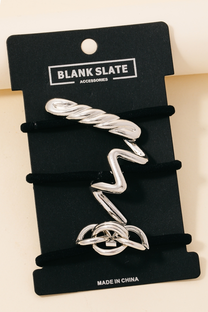 • This piece is both timeless and contemporary, this comes with a special mixed 3pc metallic charms hair tie set design. Achieve a perfect balance of style and sophistication with this versatile , the ultimate choice for the fashion-savvy individual. Available in G and S. This item is sold in packs of 1.