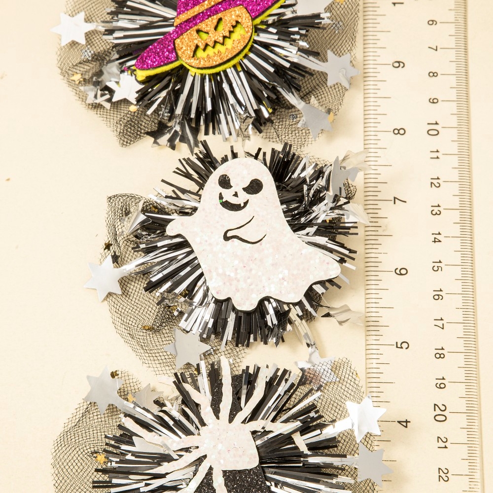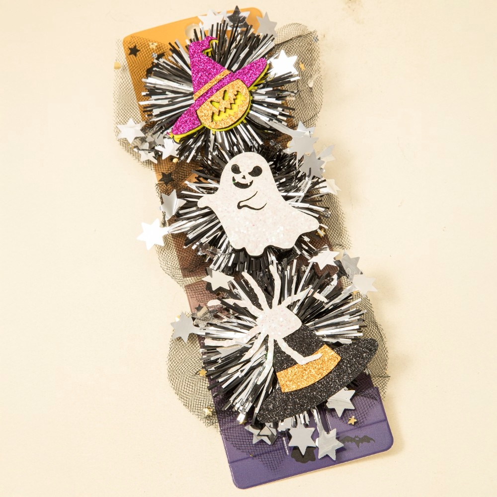 Sleek and modern, this hair clip encompasses a grand mixed mesh pompom 3pc halloween set design. Redefine your wardrobe with this versatile hair clip, a timeless addition that brings an air of sophistication to any look. Available in ASSORTED. This item is sold in packs of 1.