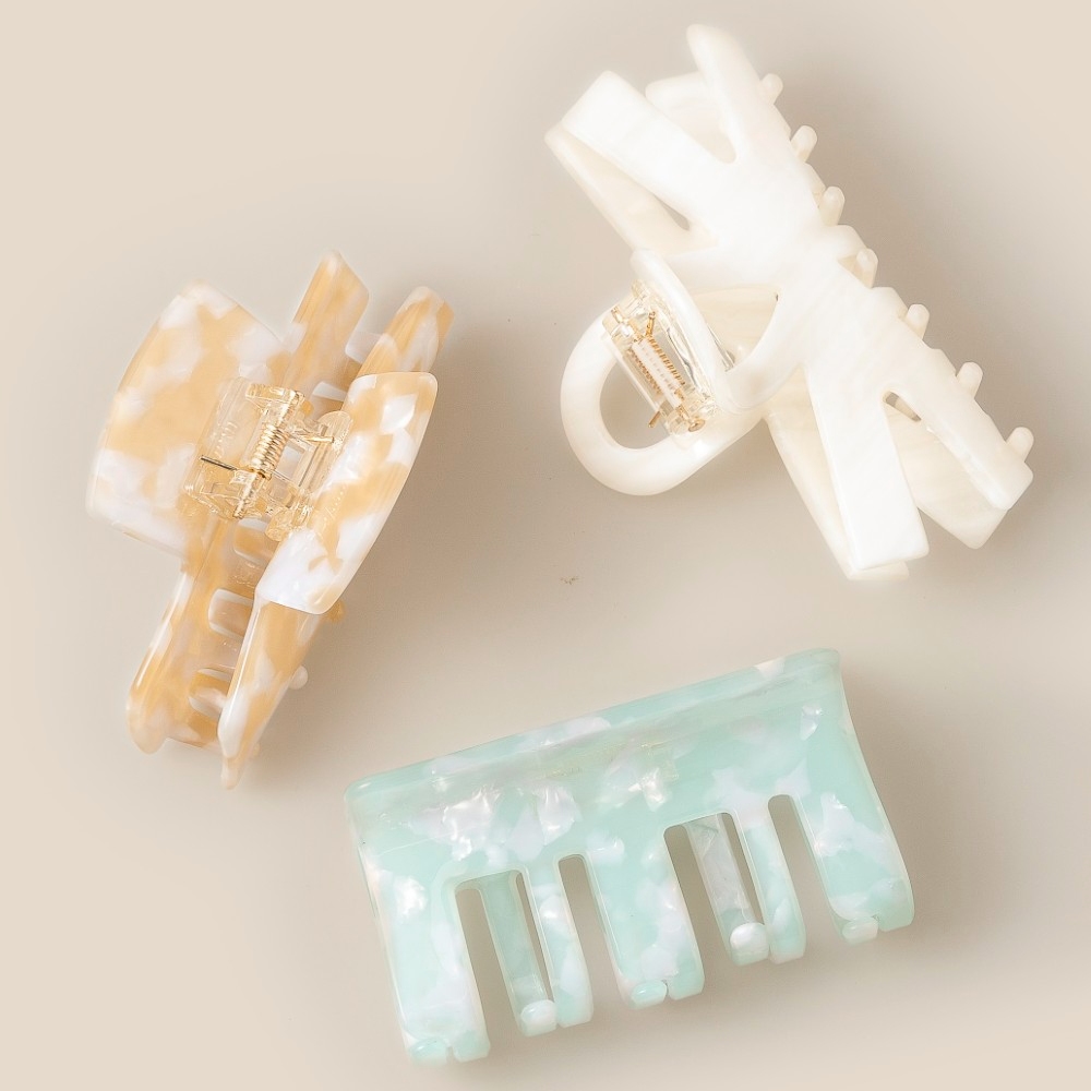 • This season's must-have , this showcases a breathtaking mixed shapes 3 piece hair claw set design. Elevate your fashion statement with this versatile , adding a touch of glamour to your everyday look. Available in MULTI. This item is sold in packs of 1.