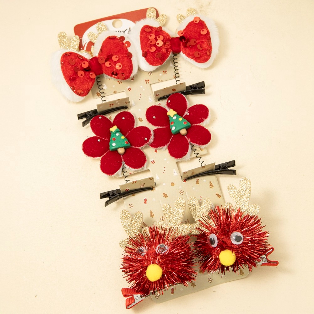 6Pc Assorted Festive Christmas Theme Hair Clip Set