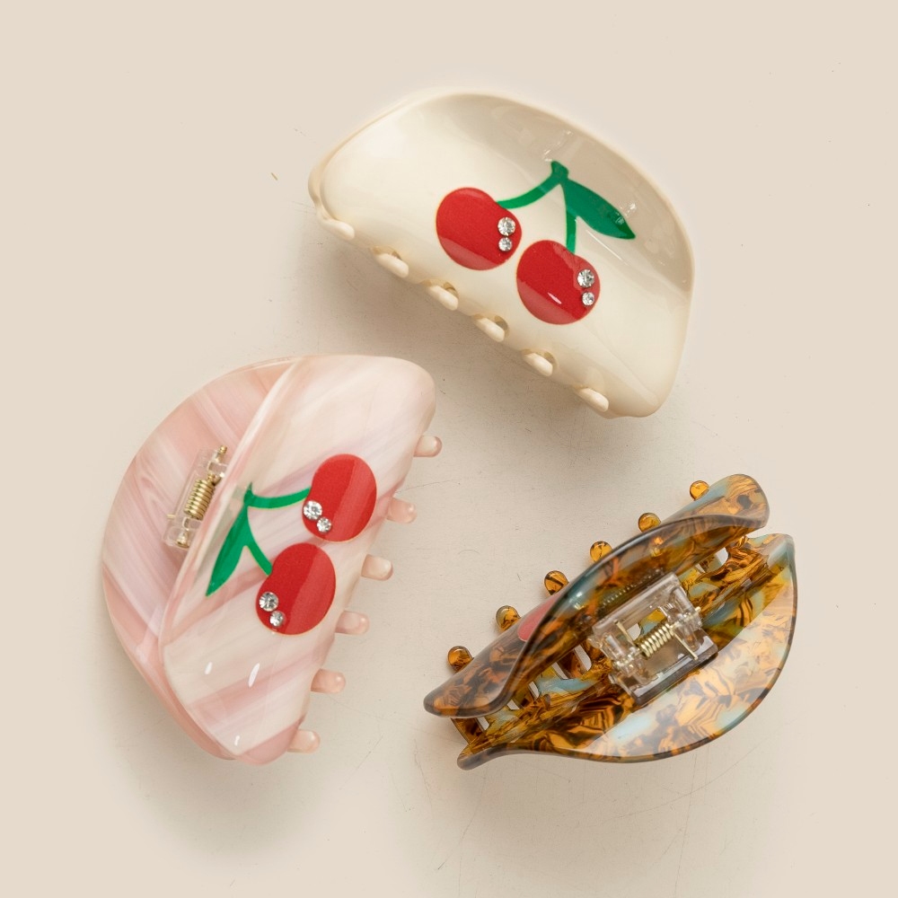 • Perfectly polished and endlessly versatile, this hair clip shows off a distinctive three piece cherry print set design. The perfect hair clip for completing any outfit, whether you're dressing up or keeping it casual. Available in NO COLOR. This item is sold in packs of 1.