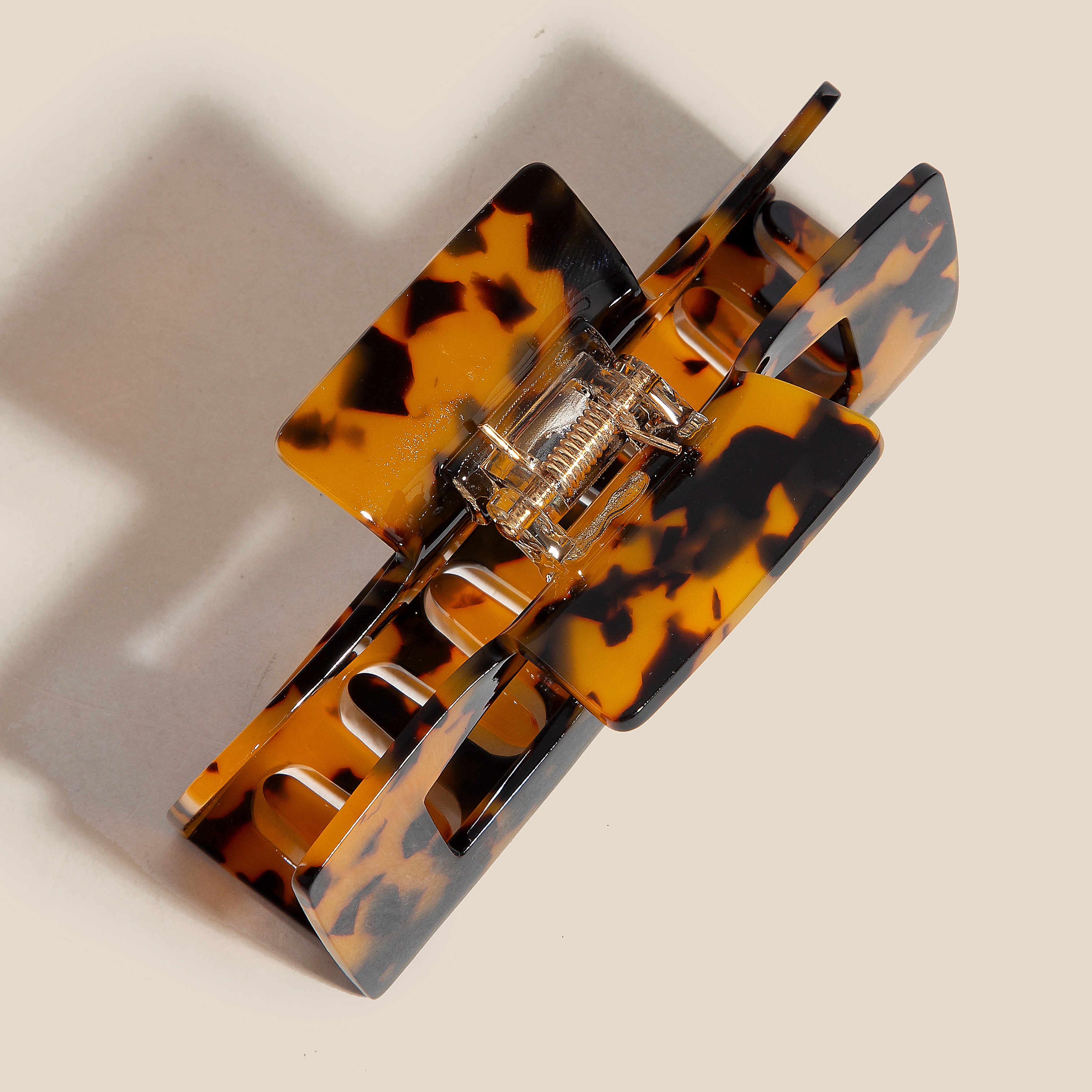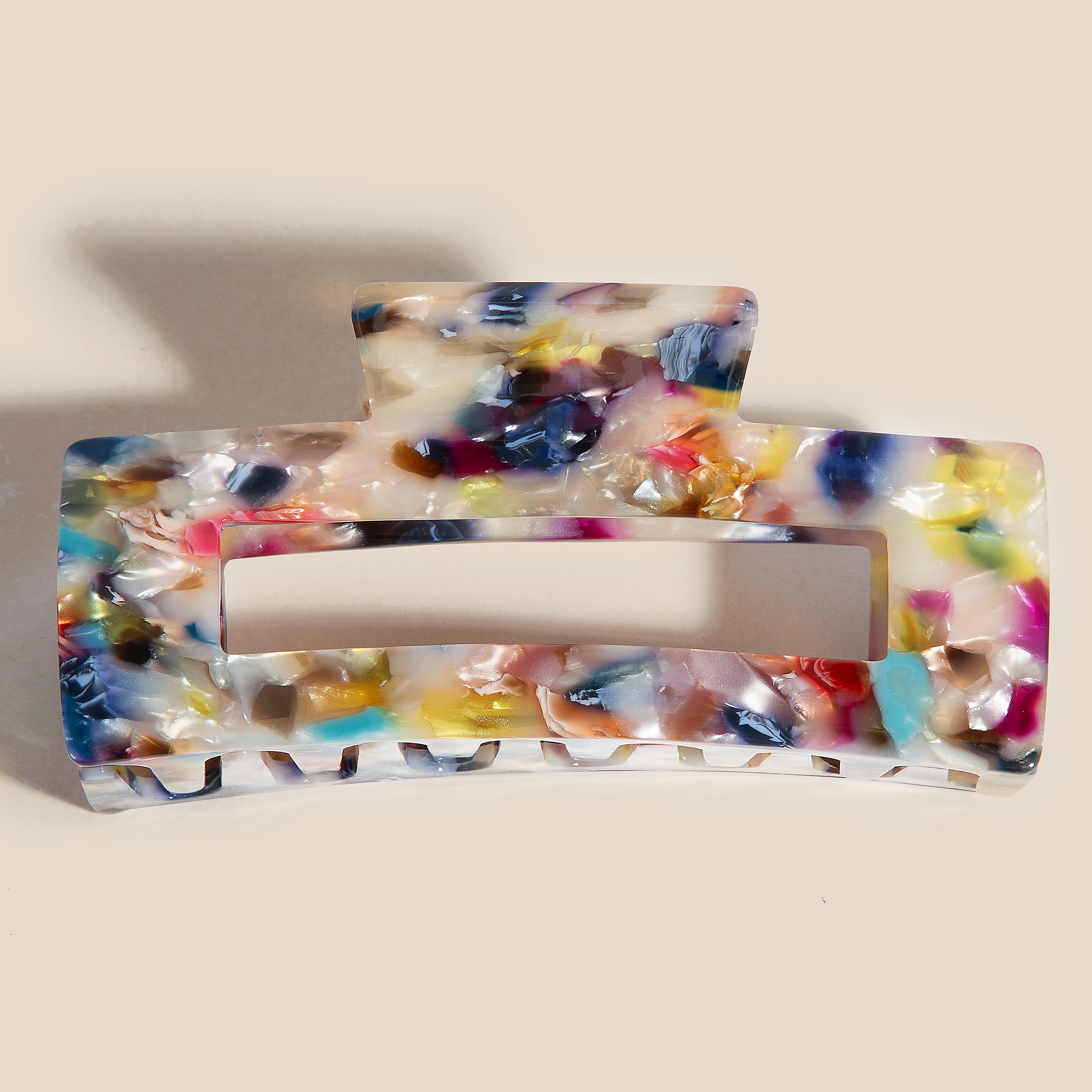 A stunning piece that is sure to turn heads, this embodies a sophisticated tortoise rectangle hair claw design. This is a great way to add some flair to your outfit without going over the top. Available in A, B, BW, C, D, E. This item is sold in packs of 12.