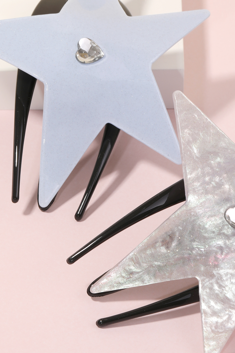 This season's hottest hair clip, this hair clip displays a unique two piece acetate star set design. Infuse your ensemble with a touch of sophistication using this versatile hair clip, a game-changer in the world of fashion. This item is sold in packs of 1.