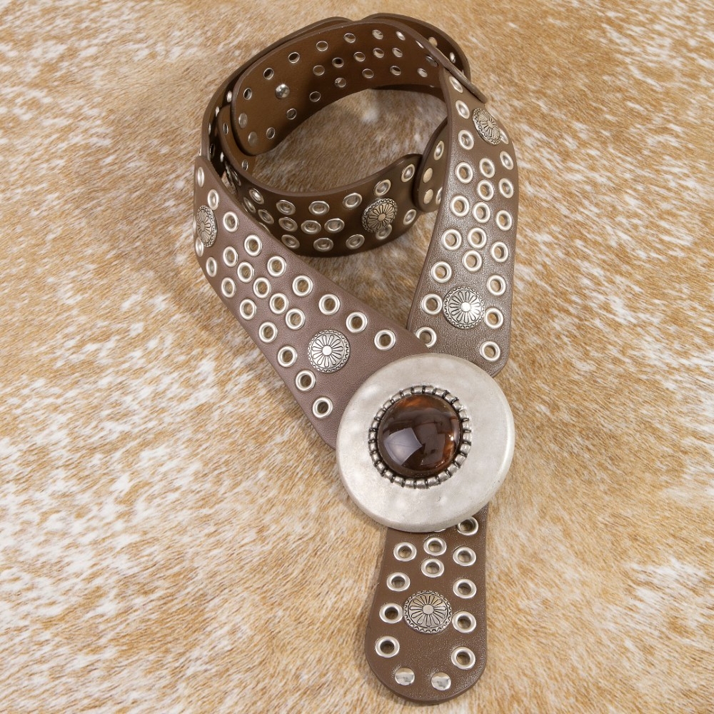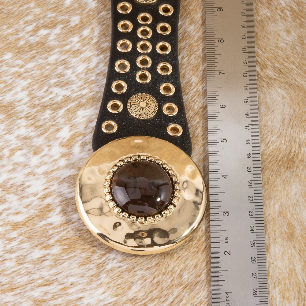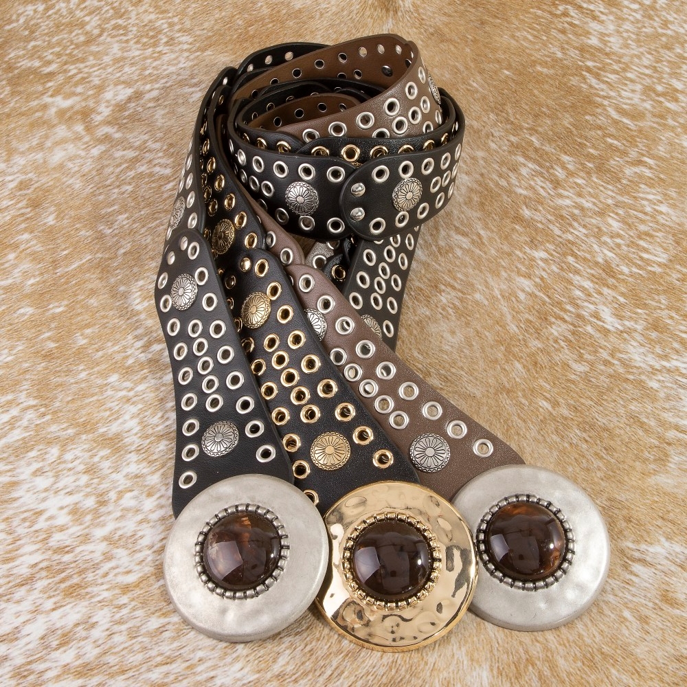 • A contemporary masterpiece, this leather belt shows off a distinctive hammered circle buckle studded vegan design. Elevate your personal style effortlessly with this versatile leather belt, an essential component for a refined wardrobe. This item is sold in packs of 12.