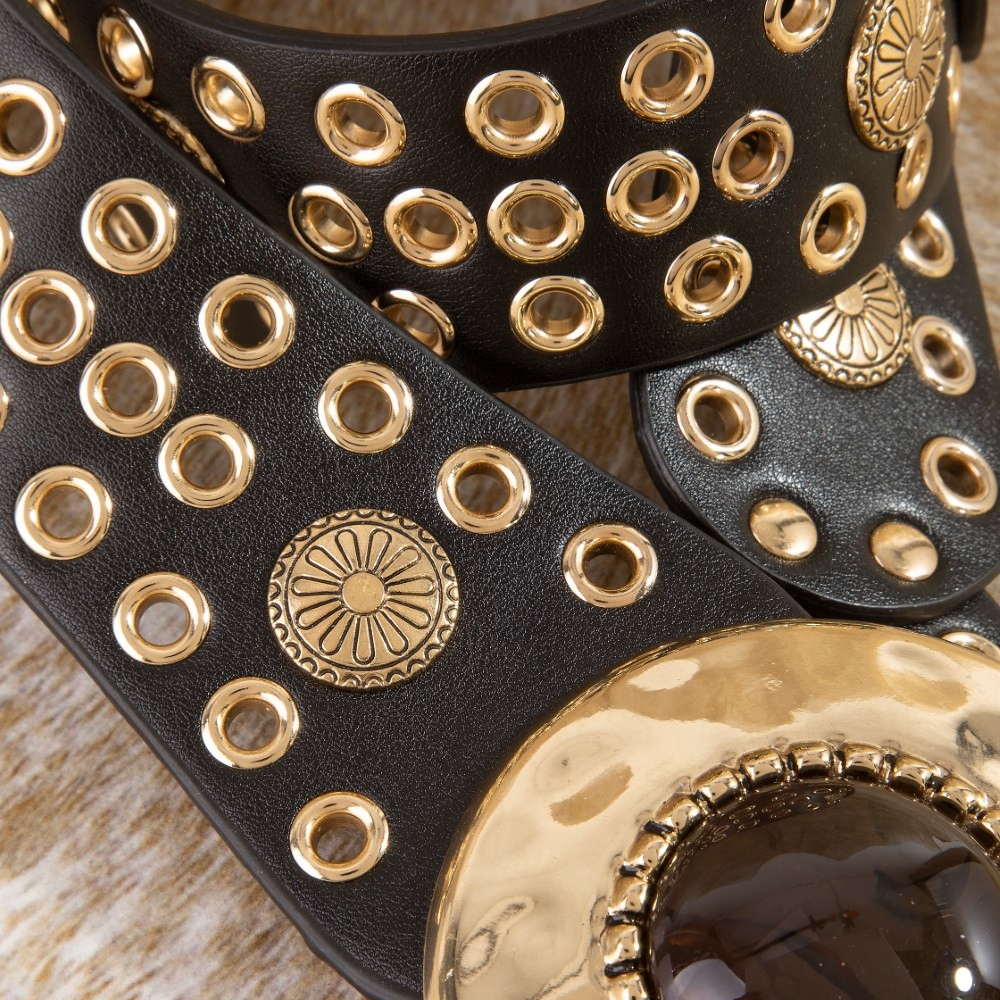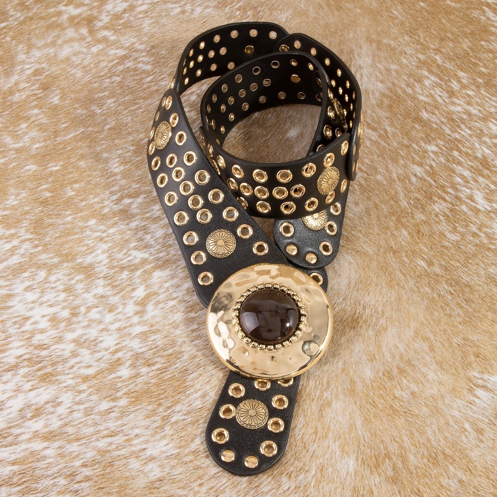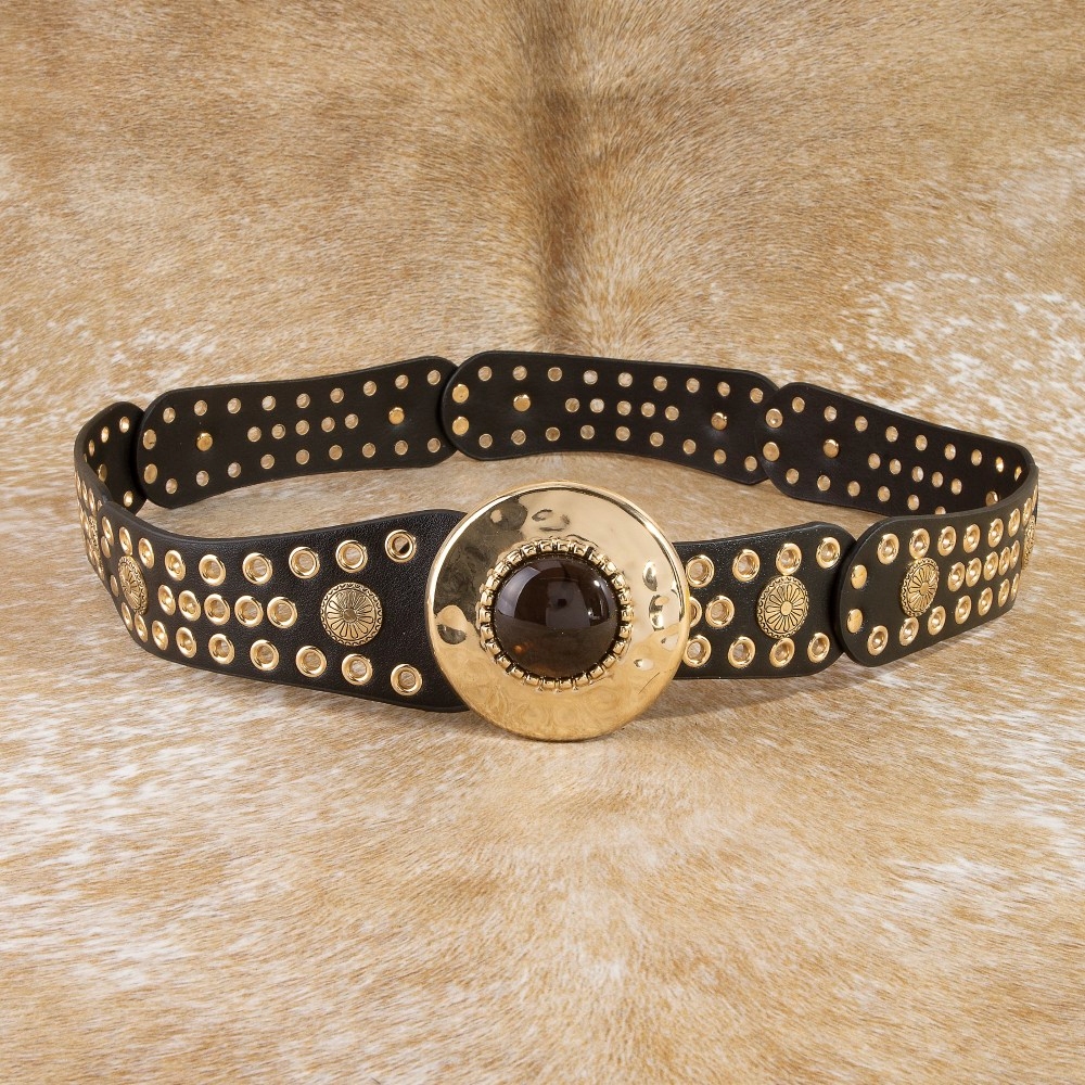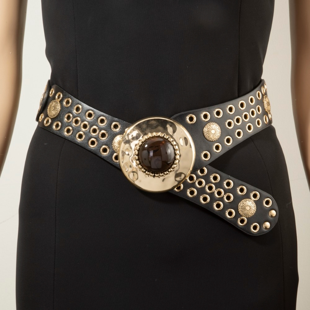• A contemporary masterpiece, this leather belt shows off a distinctive hammered circle buckle studded vegan design. Elevate your personal style effortlessly with this versatile leather belt, an essential component for a refined wardrobe. This item is sold in packs of 12.