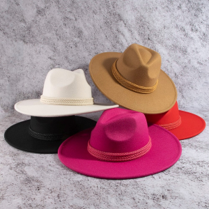 Flat Brim Herringbone Chain Fedora Fashion Hat
