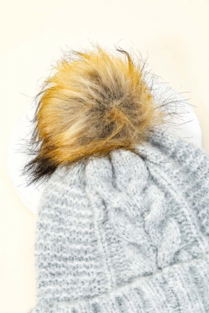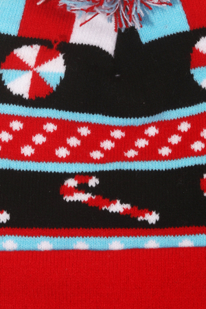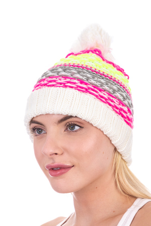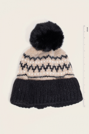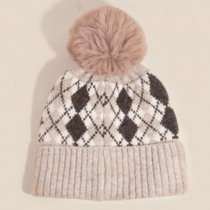 Abstract Diamond Stripe Knit Pom Pom Beanie